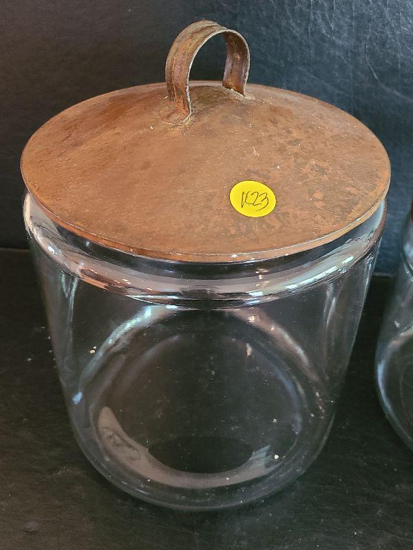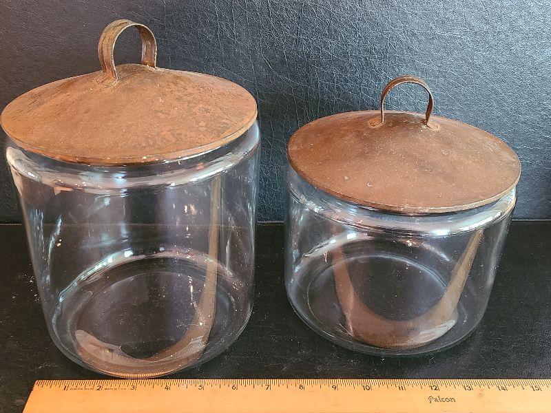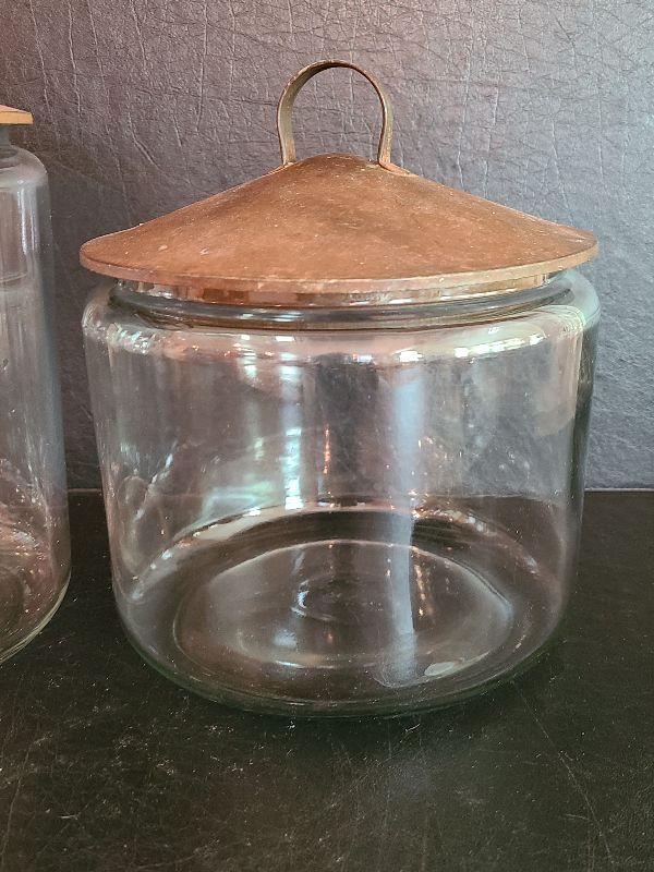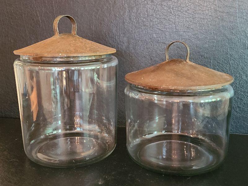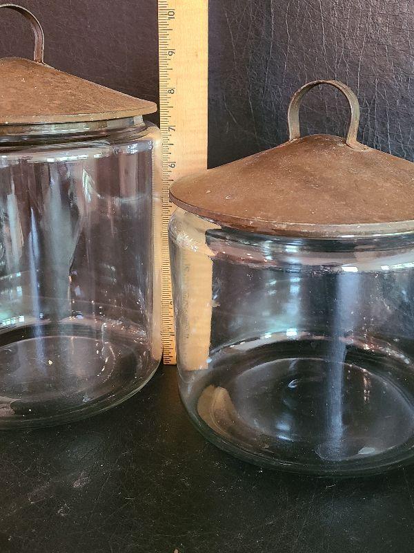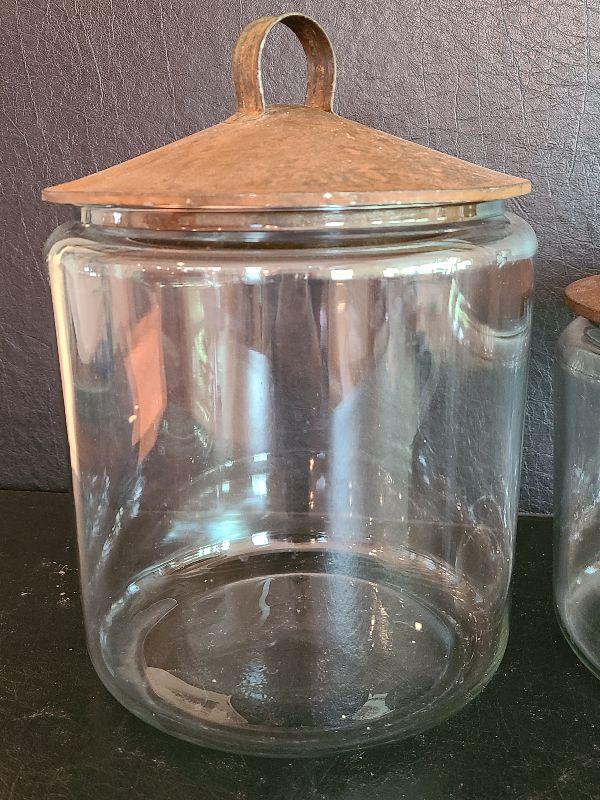 Large Glass Canisters with metal lids, perfect for anything! Not airtight. Please see pictures for contents of the lot, condition of the lot, and measurements if needed. Thank you for looking and have fun bidding!