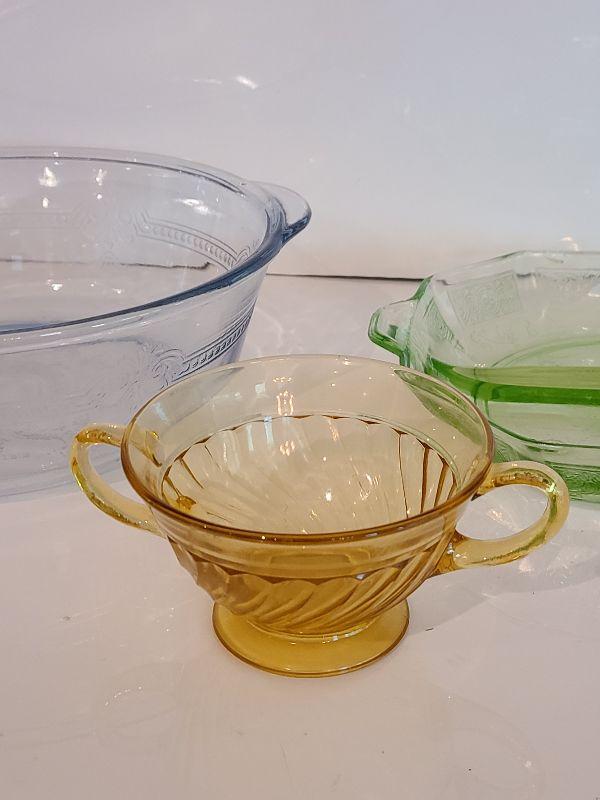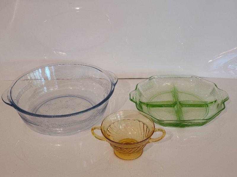 Sapphire Blue Fire King, green depression (chipped), and yellow cup! Pretty! Please see pictures for contents of the lot, condition of the lot, and measurements if needed. Thank you for looking and have fun bidding!