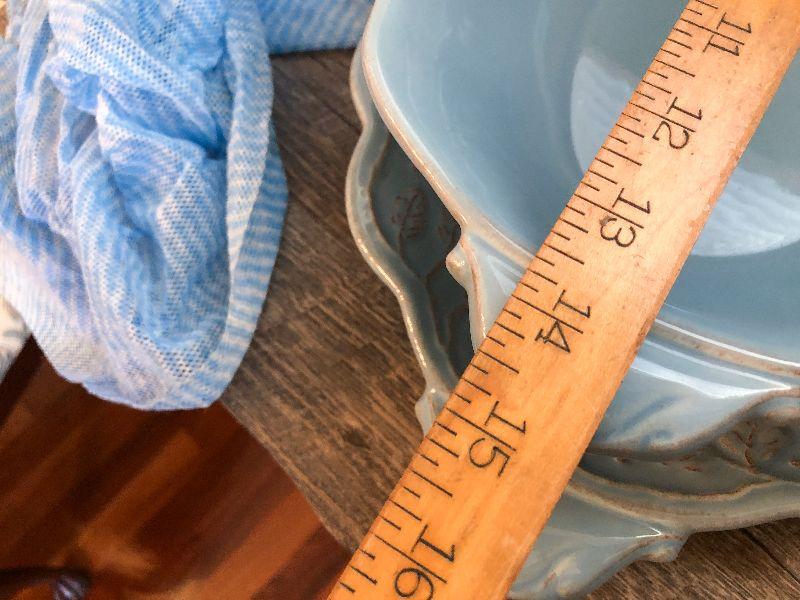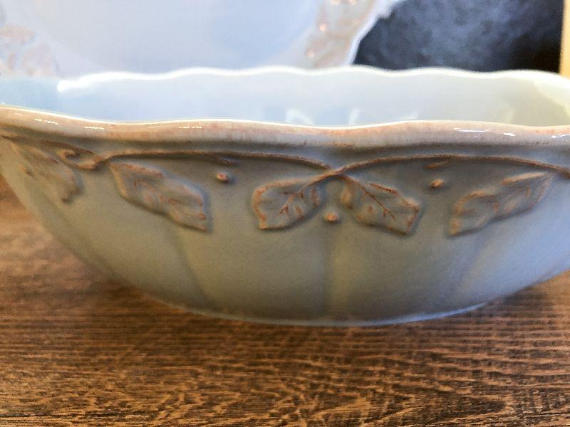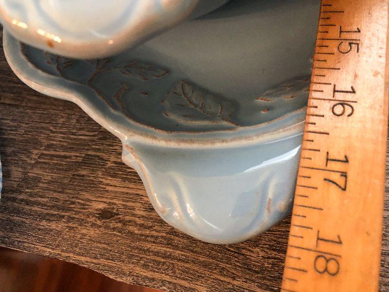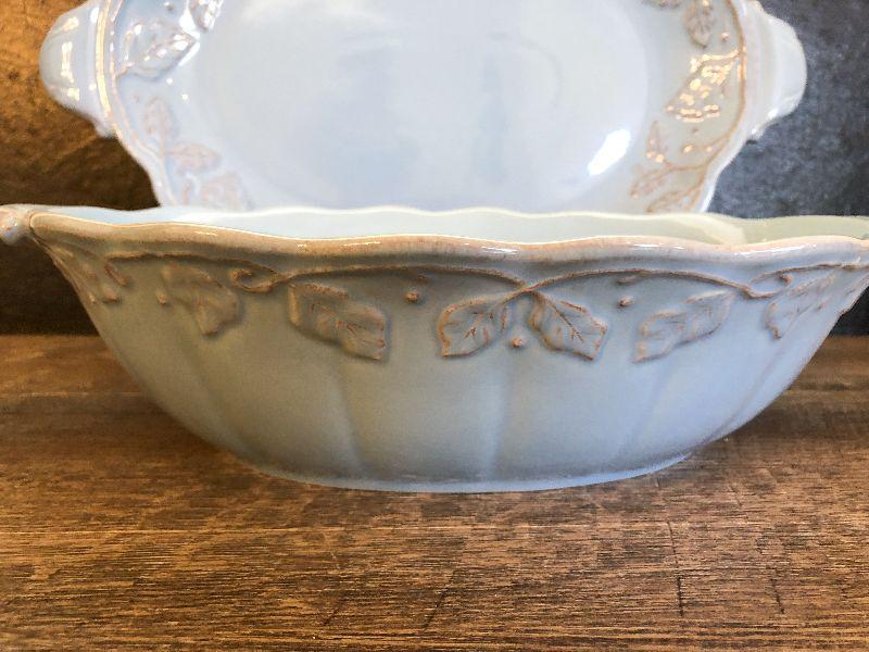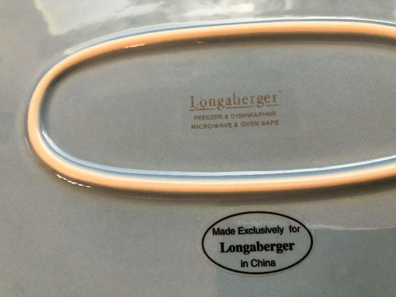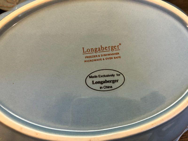 Longaberger Blue Serving Platter and Bowl. Please refer to photos for size and condition. Have fun and happy bidding.