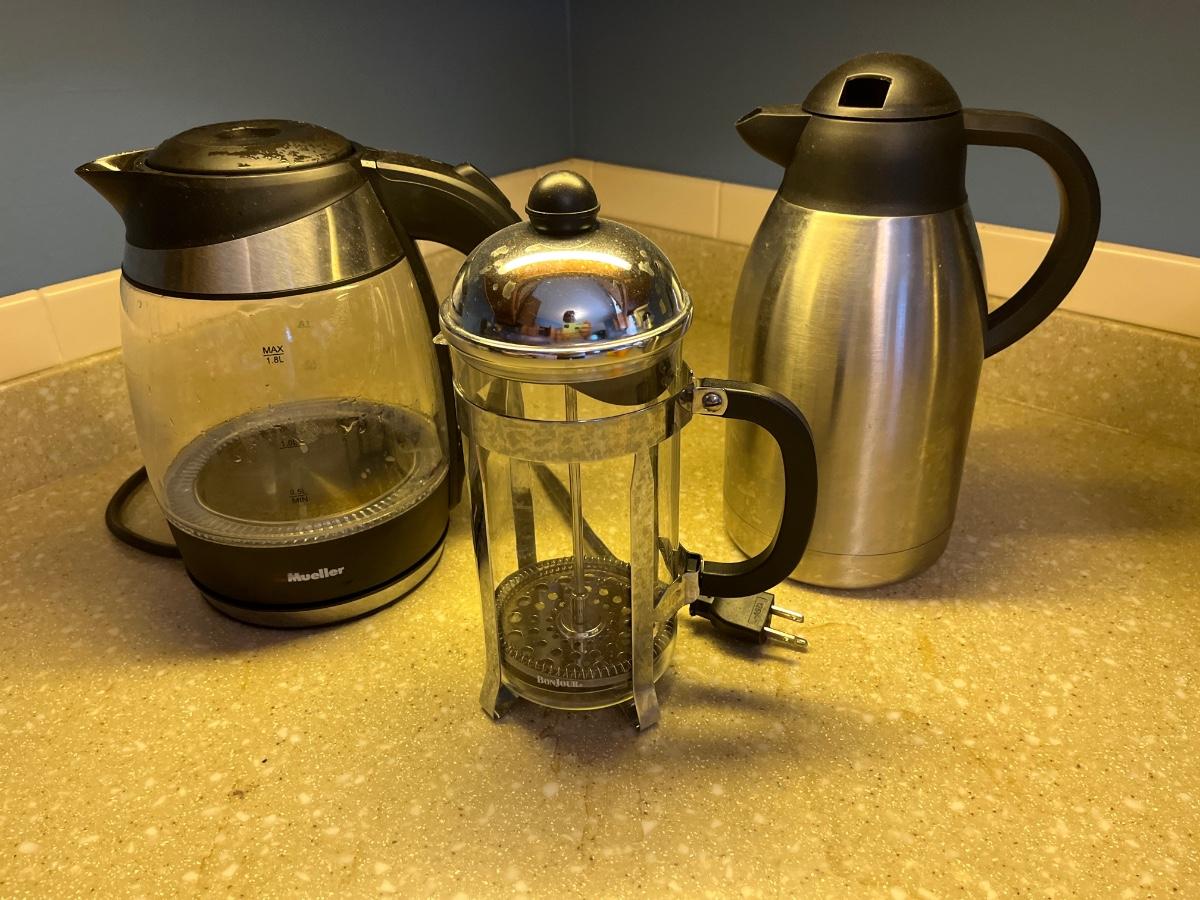 K250- Mueller electric coffee pot, Bonjour coffee press, Carafe