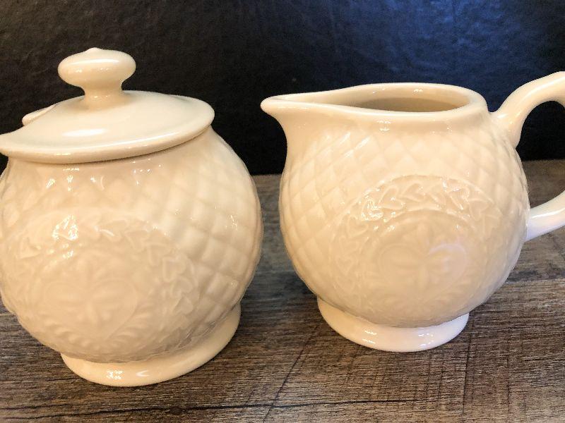 Longaberger Creamer and Sugar. Please refer to photos for size and condition. Have fun and happy bidding.