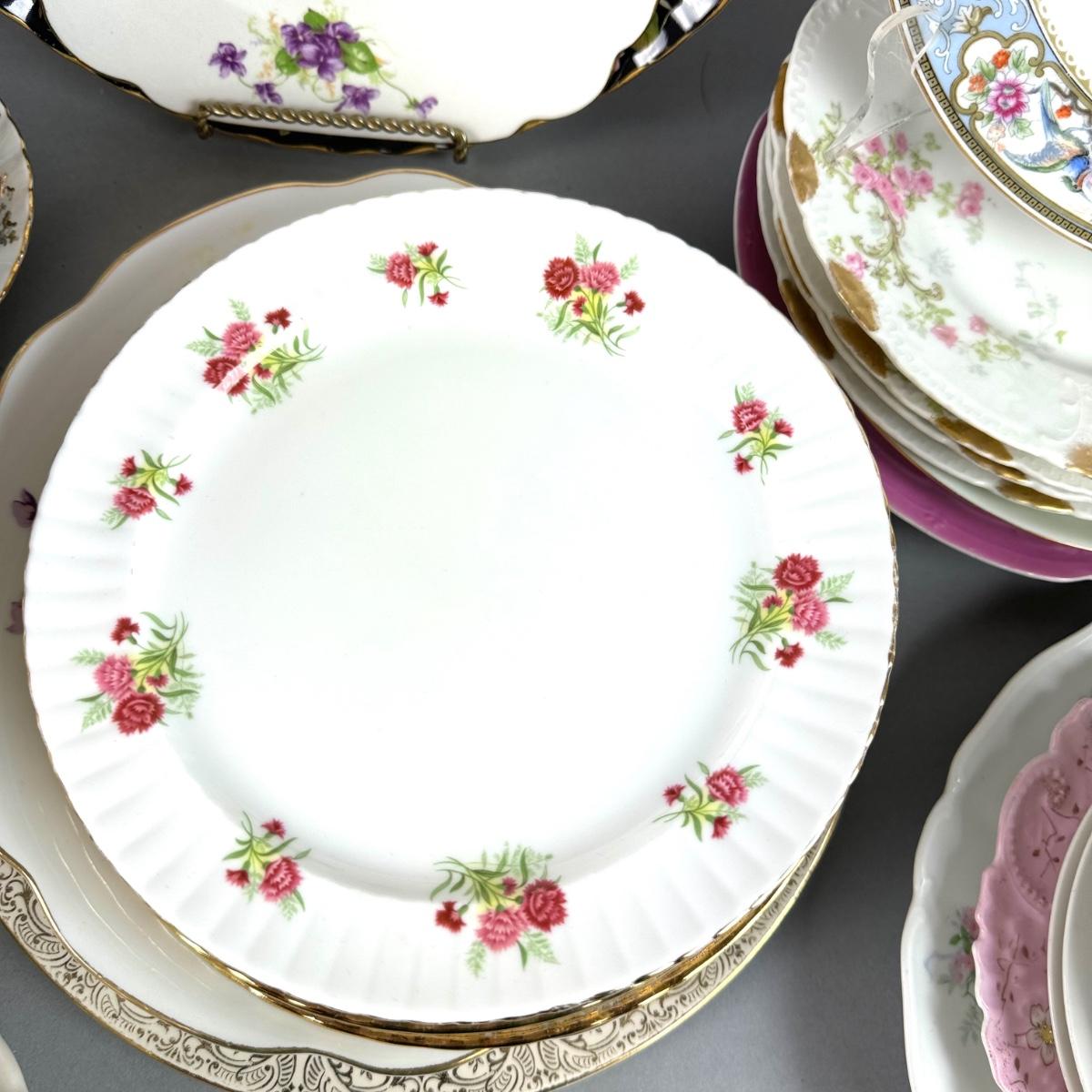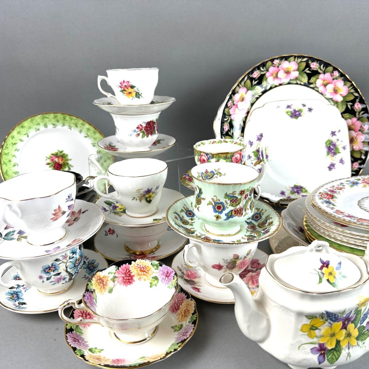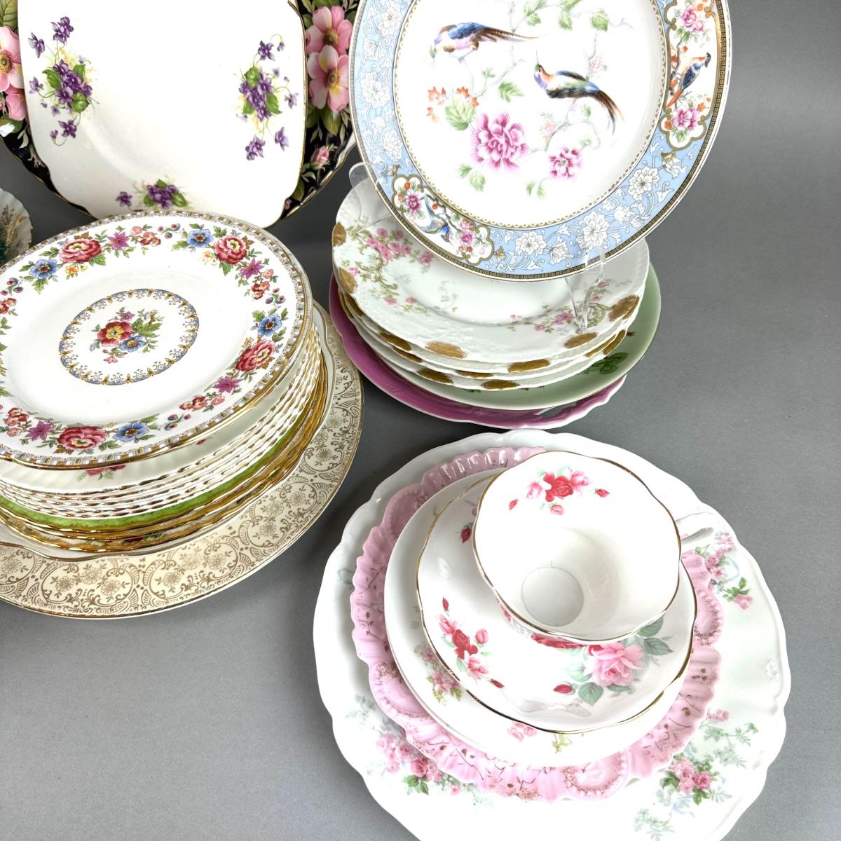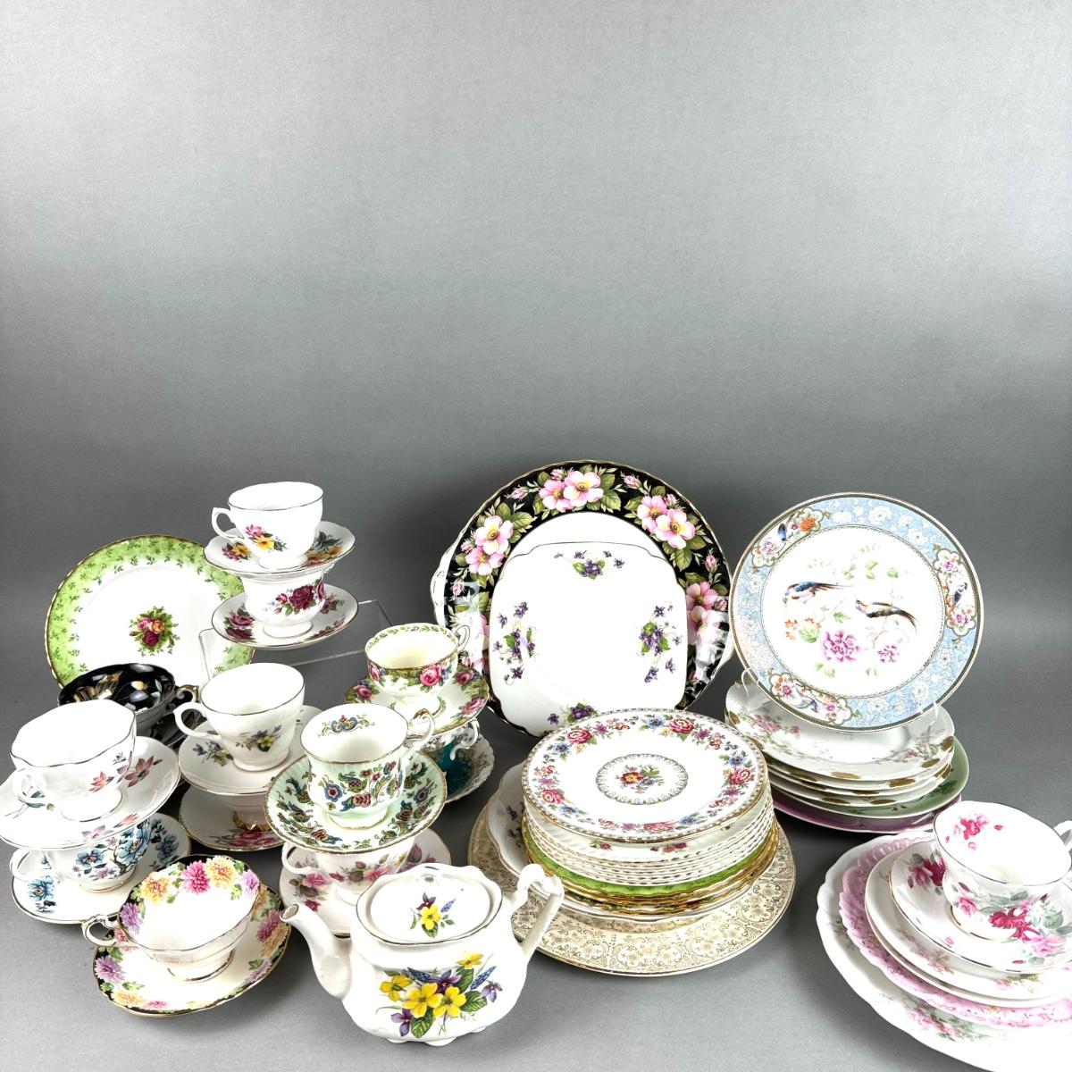 The lot contains plates, tea cups, tea pot and many plates in various sizes and various makers.