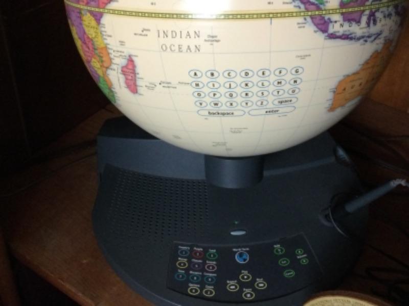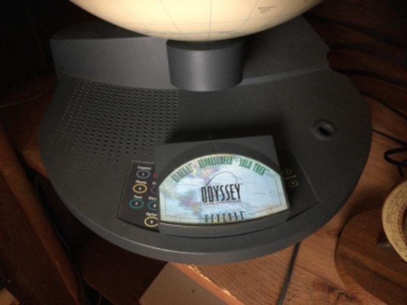Odyssey Atlasphere Interactive Globe comes with game cartridge Eureka Globesurfer Solo Trek. Has not been tested. Uses batteries or power cord. Also included is a pair of spinning globe bookends