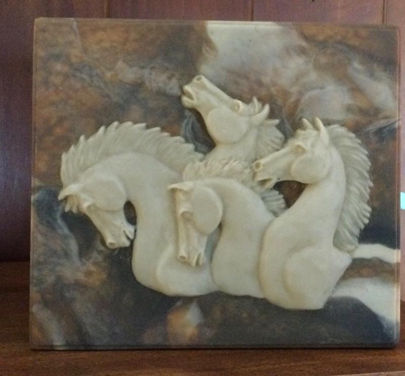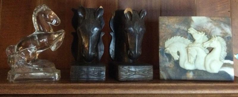 K-286 Incolay Stone Horse Box Wood Horse Head Bookends Glass Horse Figure