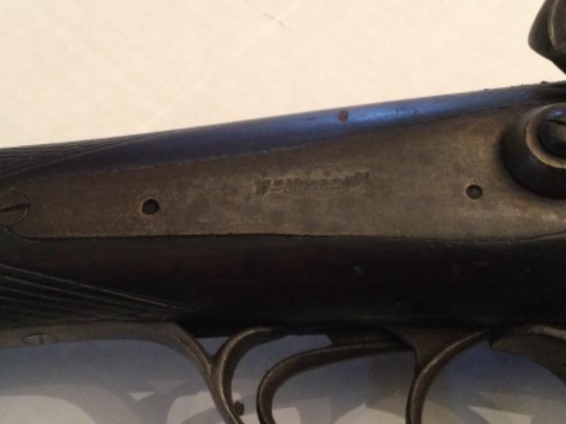 Vintage Wm. Moore & Co. double barrel 12 gauge shotgun has some damage on butt. Do not know if it is in working condition