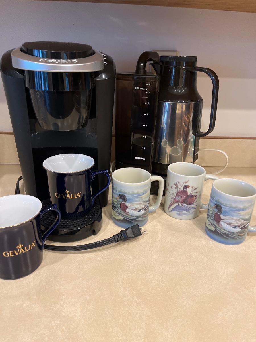 K29- Keurig coffee maker, Krups tea maker & mugs