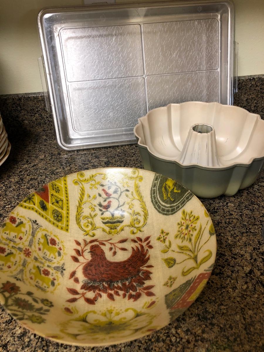 K30- Vintage Artmor bowl, dessert tin w/cover, Bundt pan