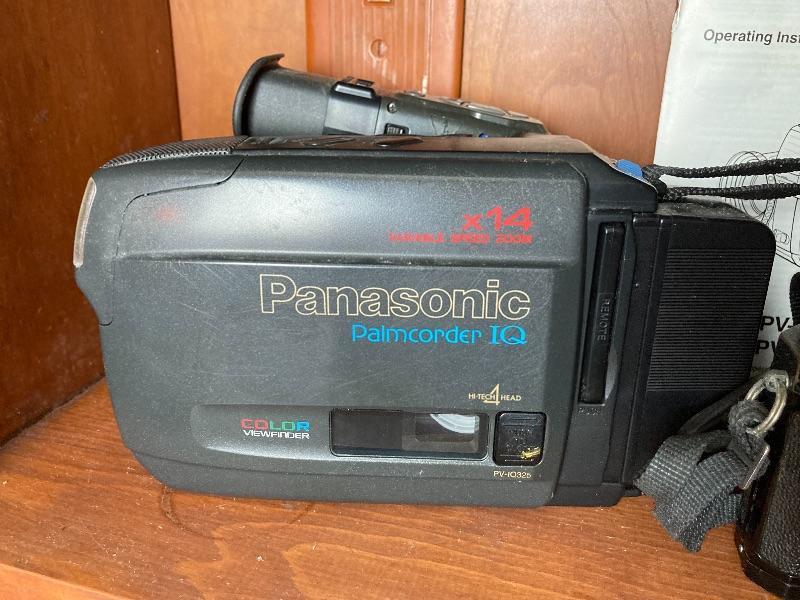 K-320 Panasonic Palm Corder IQ Two Nikon 35mm Cameras with Lenses Flashes and Tripod