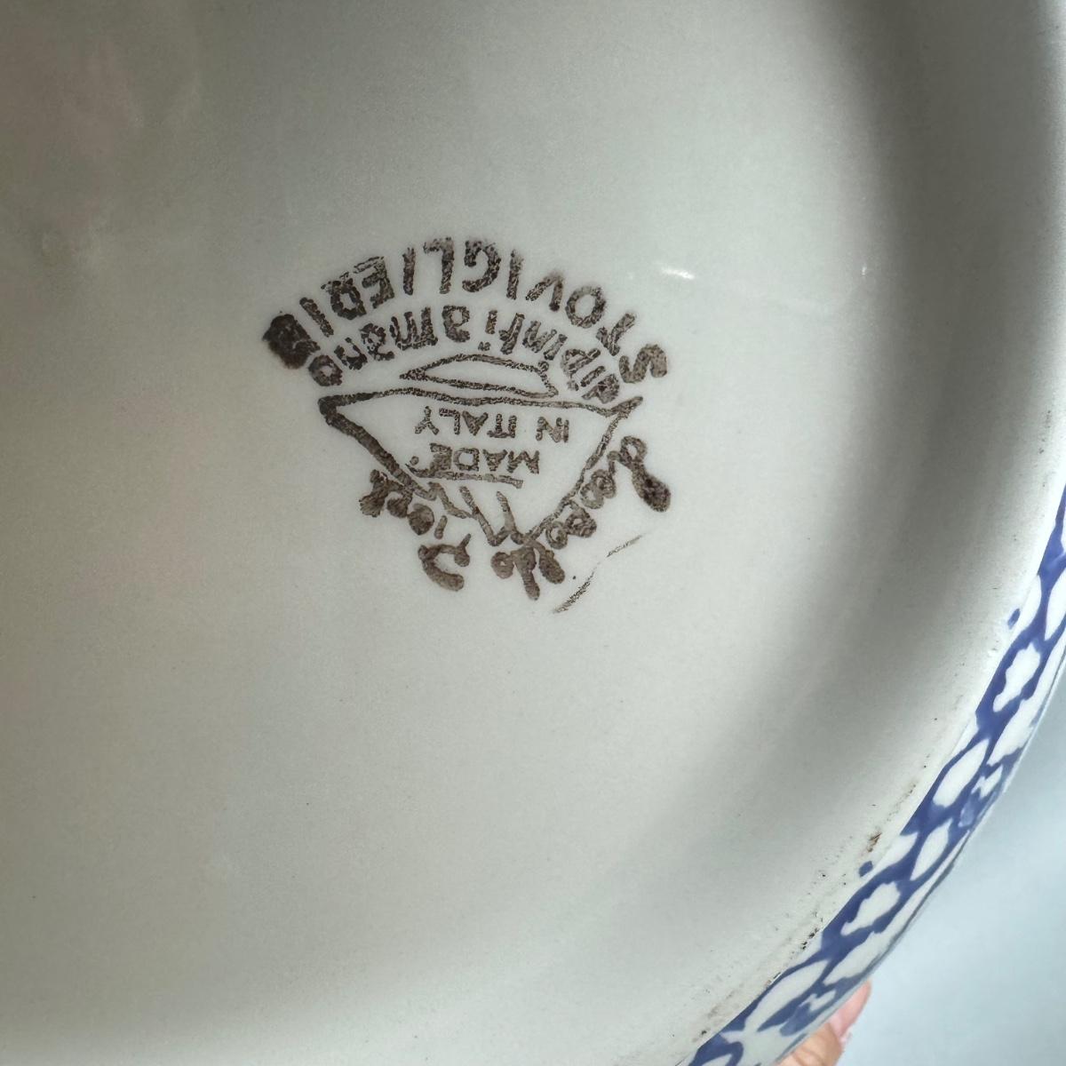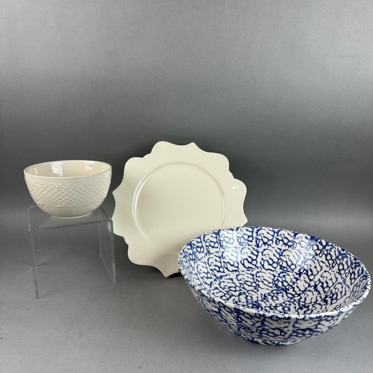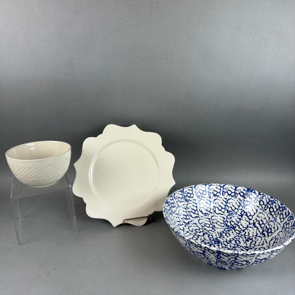 K330 Large Blue and White Pottery Bowl with White Platter and Serving Dish