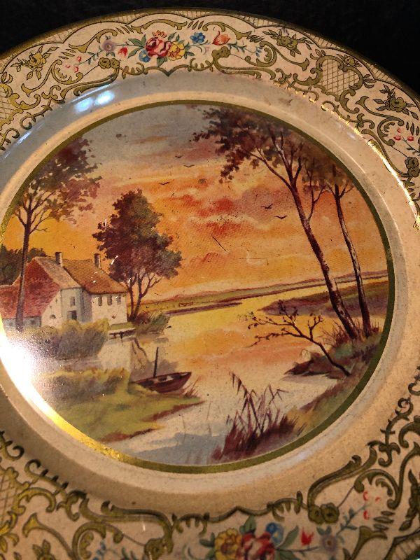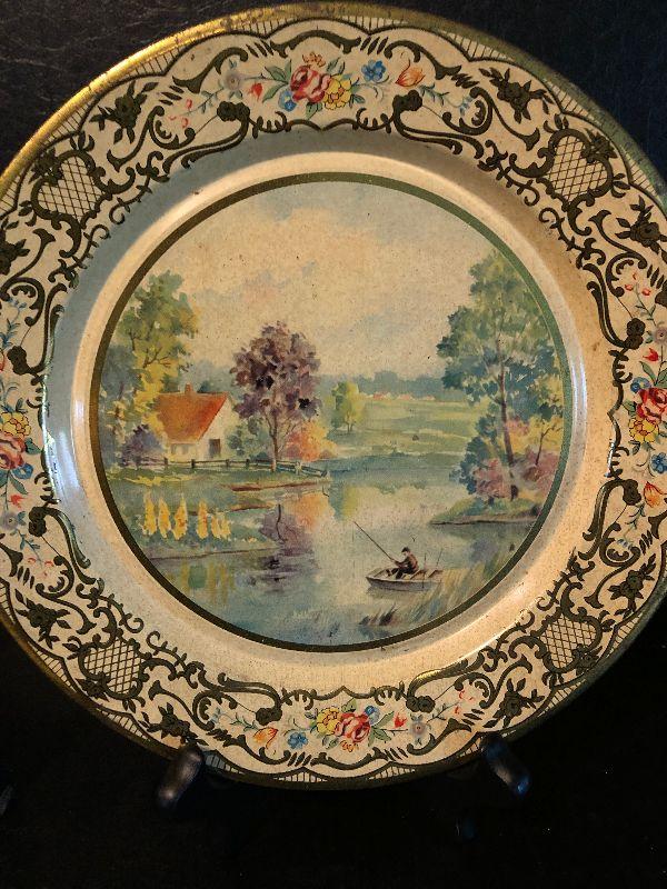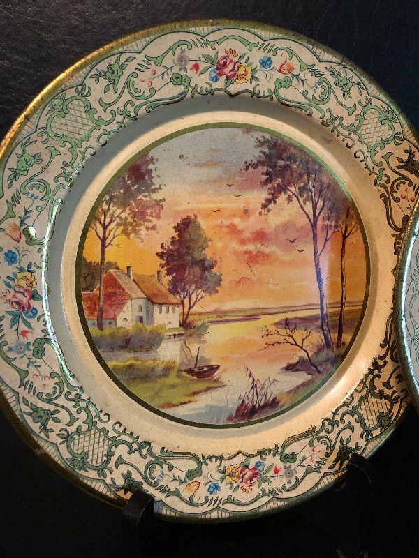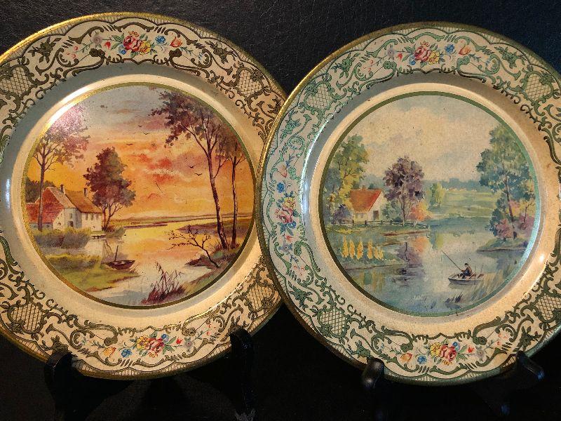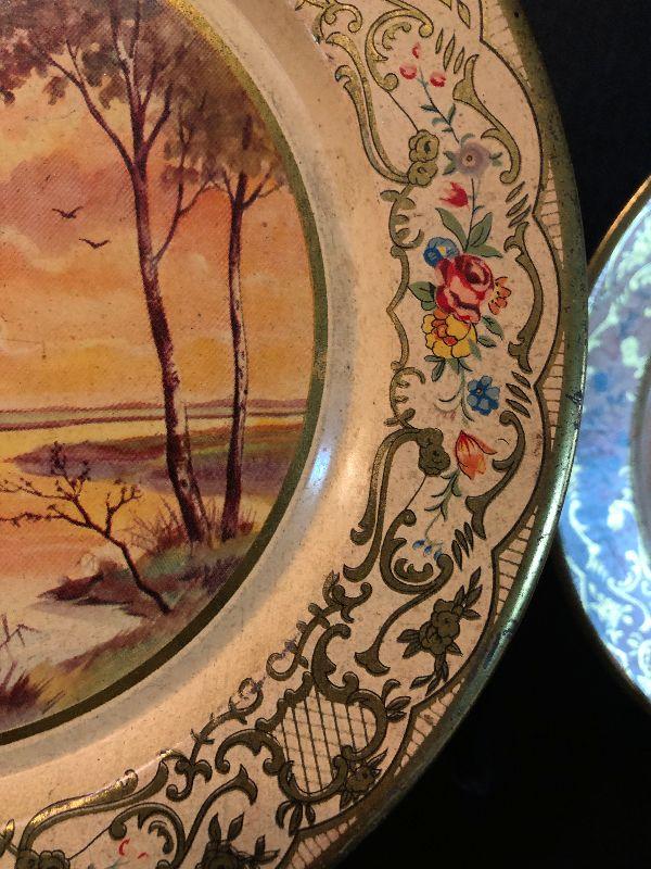 Vintage collectible tin plates. Pictures say it best! Please see all pictures for exactly what is in the lot, the condition of the item/s, and the measurements if needed. Thank you for looking and have fun bidding!