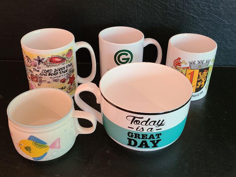 Fun lot of coffee cups. Please see pictures for contents of the lot, condition of the lot, and measurements if needed. Thank you for looking and have fun bidding!