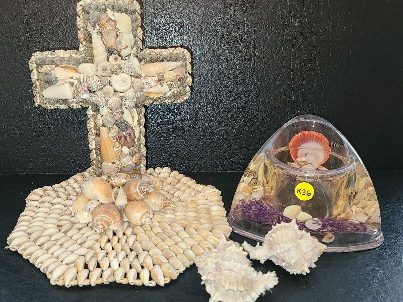 K36: Shell Inspired Decor, Shell Cross, Shell candle Holder and More