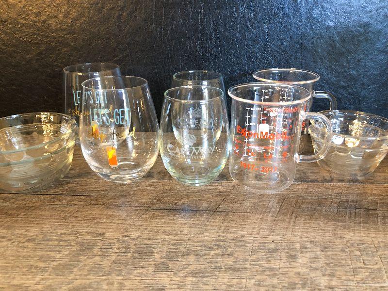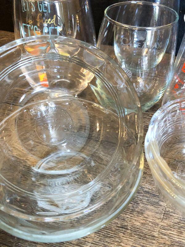 Collection Clear Glasses and Dishes. Please refer to photos for size and condition. Have fun and happy bidding.