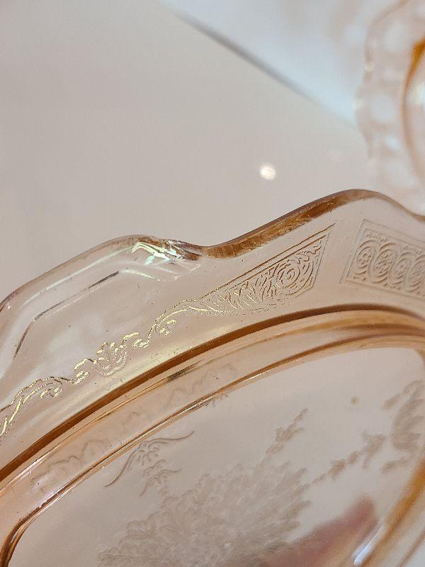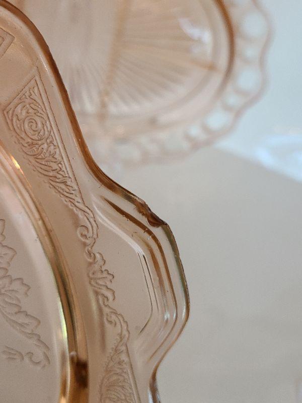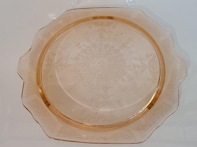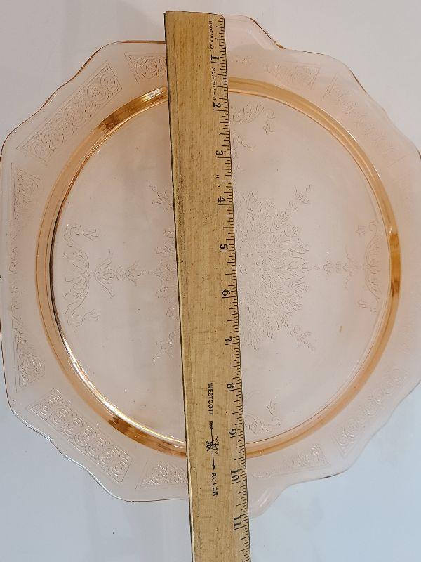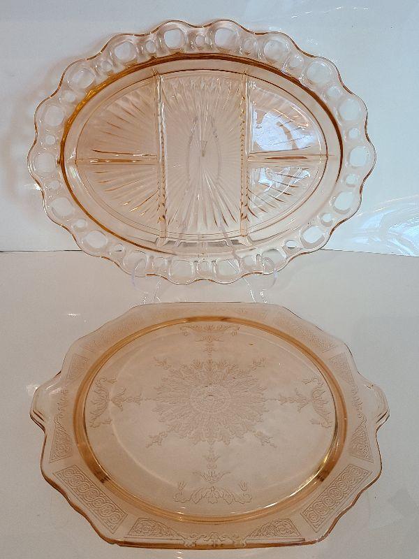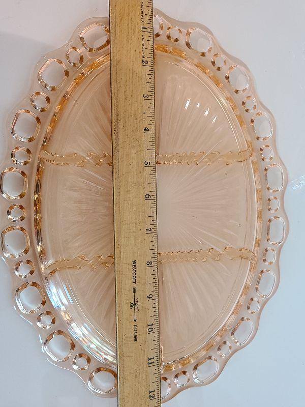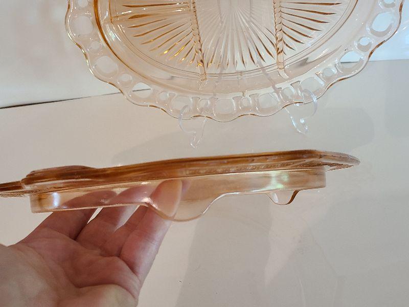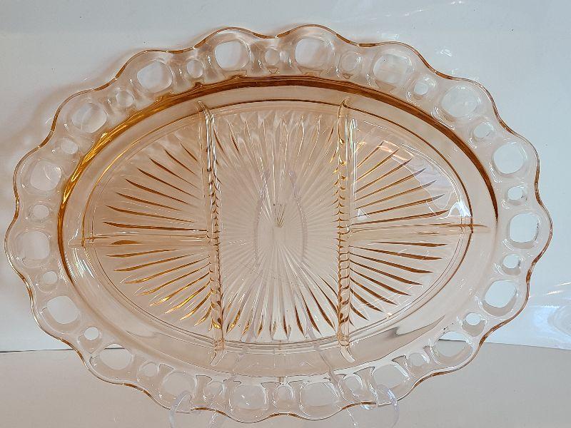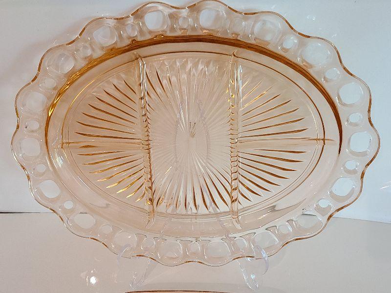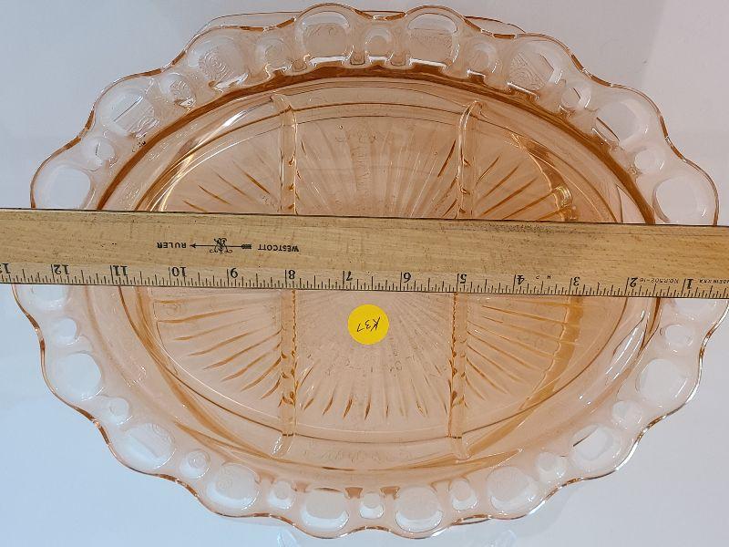 K37: Pink Depression Glass Cake Plate/ Divided Platter
