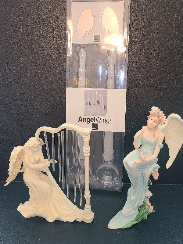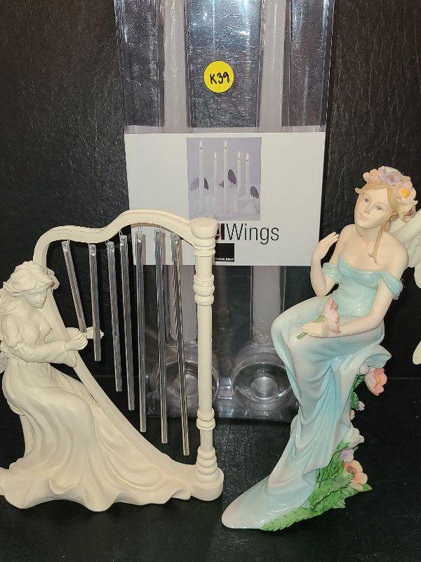K39: Angel Harp, Angel Wings Candlestick and Cloudworks Figurine