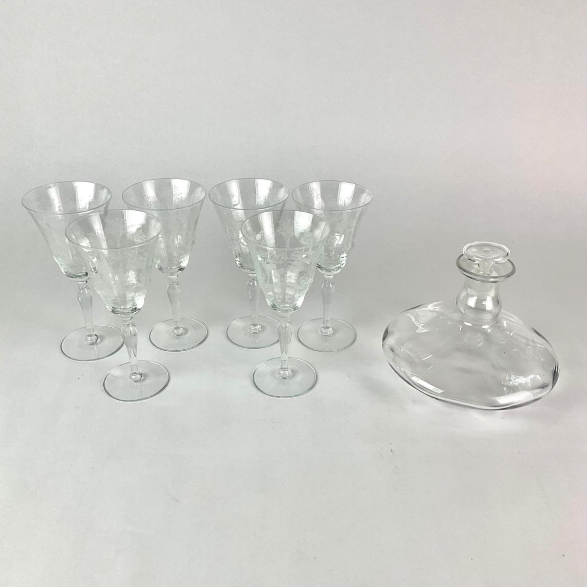 K39 Decanter and Floral Etched Crystal Stemware Lot