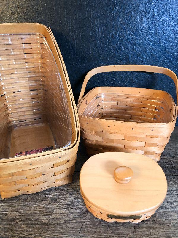 Three Baskets. Please refer to photos for size and condition. Have fun and happy bidding.