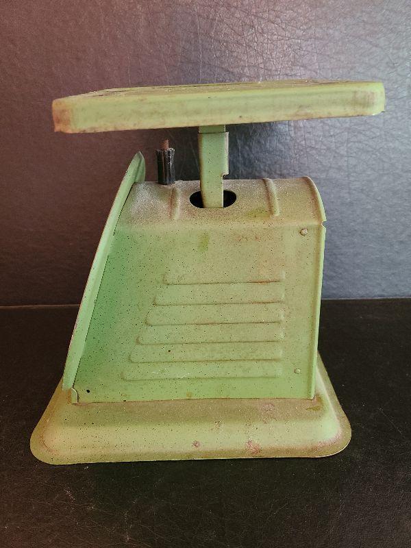 Very cool vintage Scale. No glass in front. Please see pictures for contents of the lot, condition of the lot, and measurements if needed. Thank you for looking and have fun bidding!