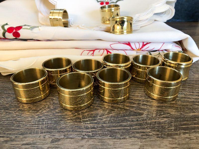 Christmas Tablecloth, Napkins and Rings. 64x128. Please refer to photos for size and condition. Have fun and happy bidding.
