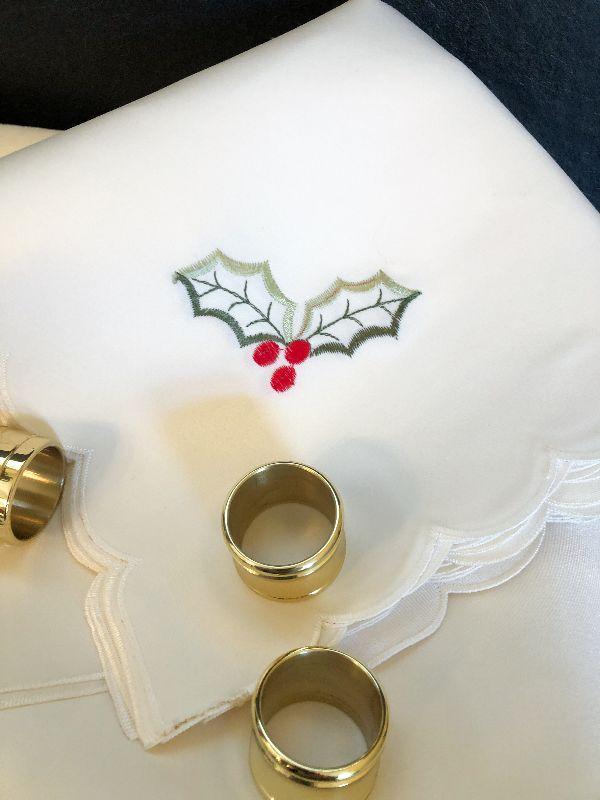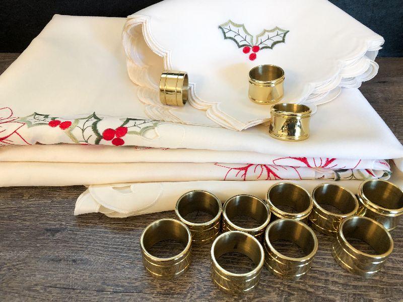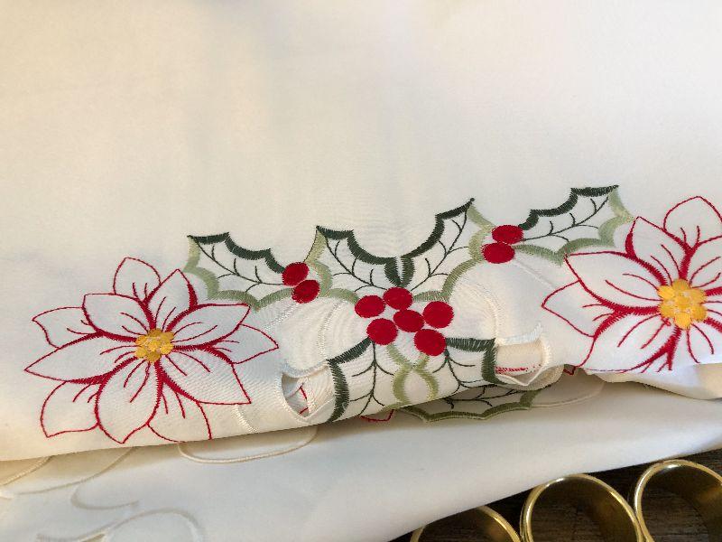 K41: Christmas Tablecloth, Napkins and Rings. 64x128