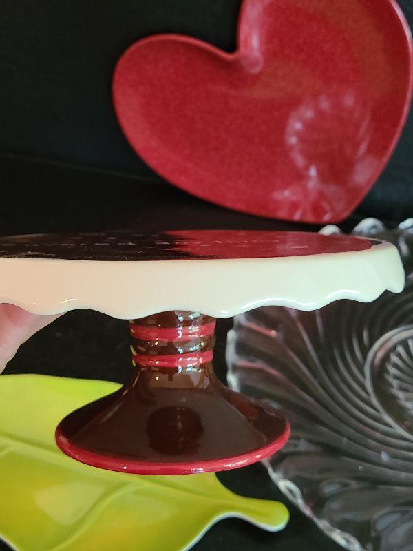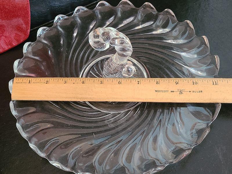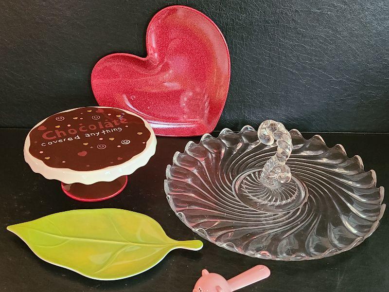 Nice lot for serving treats. The glass cake stand handle has been repaired. Please see pictures for contents of the lot, condition of the lot, and measurements if needed. Thank you for looking and have fun bidding!