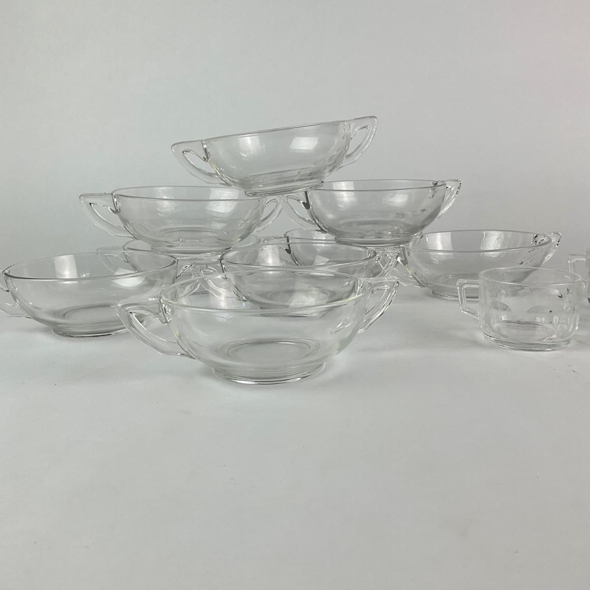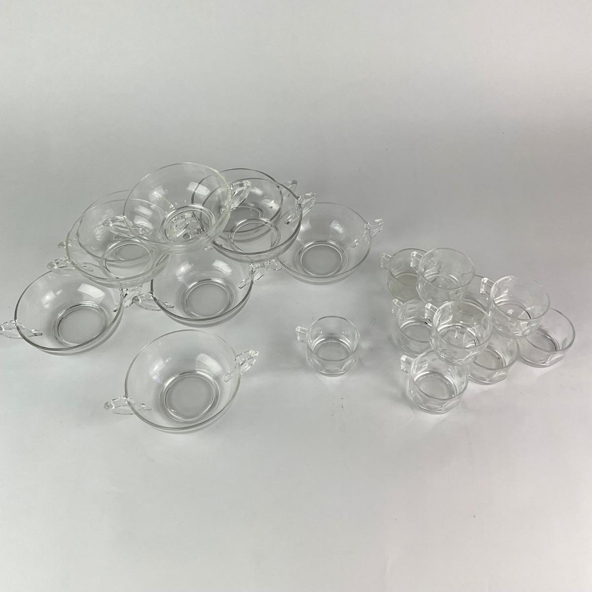 Includes 10 small espresso shot glasses, and 9 handled cream soup bowls
