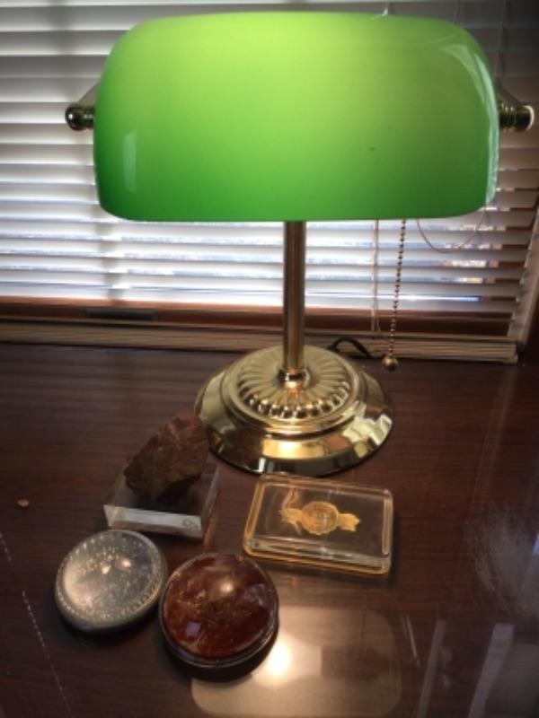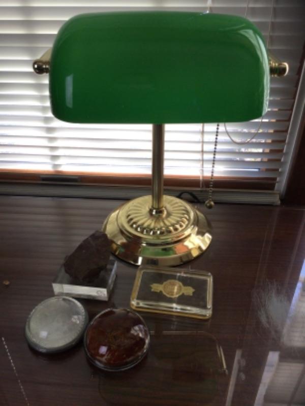 K-436 Brass Students Desk Lamp and Four Paperweights