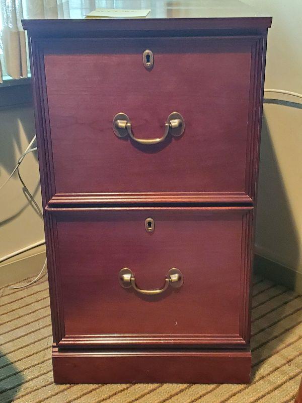 Very nice 2 Drawer filing cabinet. 29 x 16 x 25. Please see pictures for condition. Good luck and happy bidding.