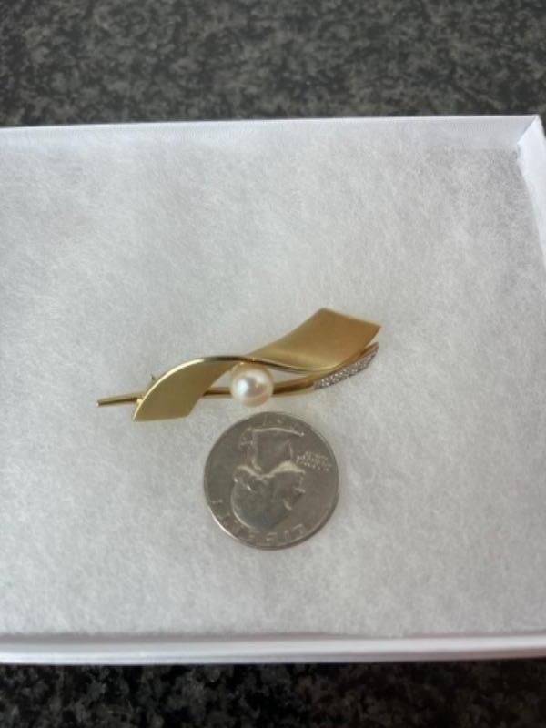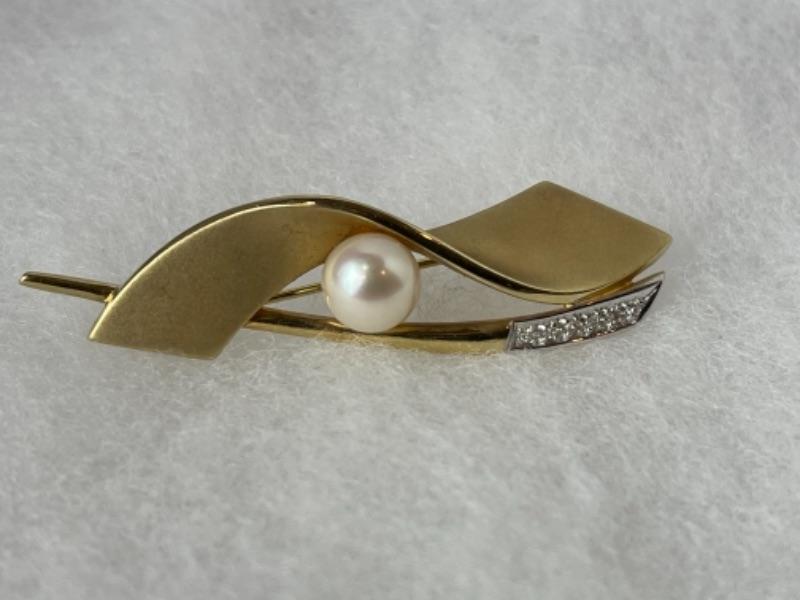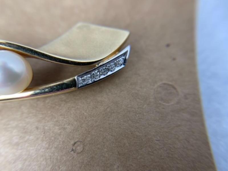 K450 18k YG Pearl and Diamond Pin/Brooch