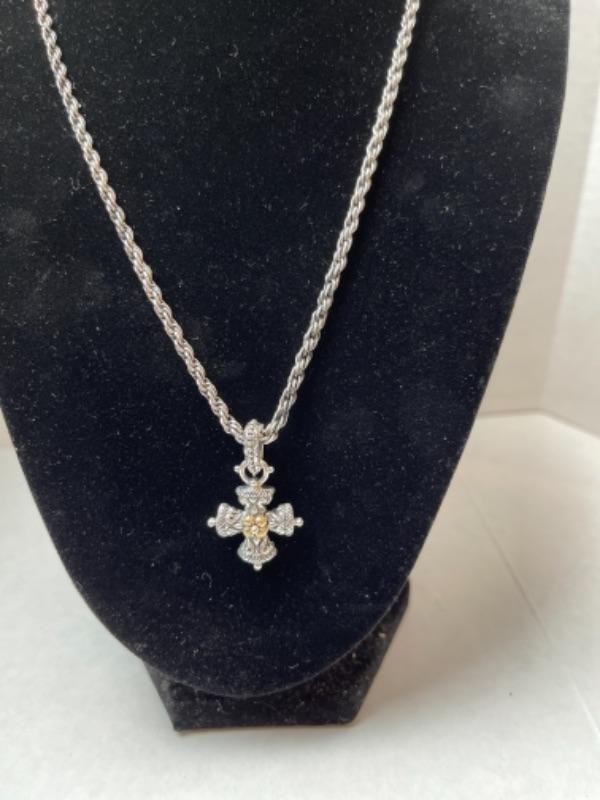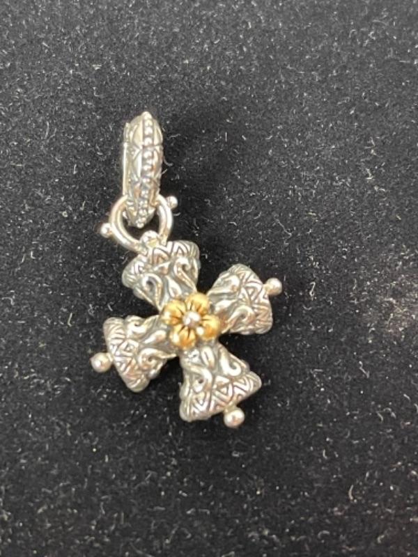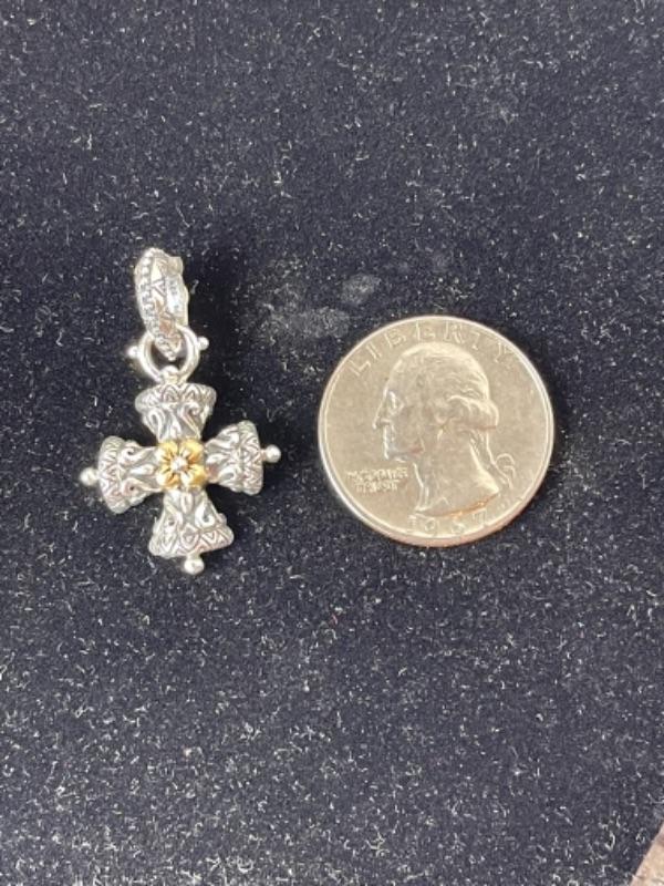 K451 Sterling & 18k gold Barbara Bixby Cross Necklace  Pendant