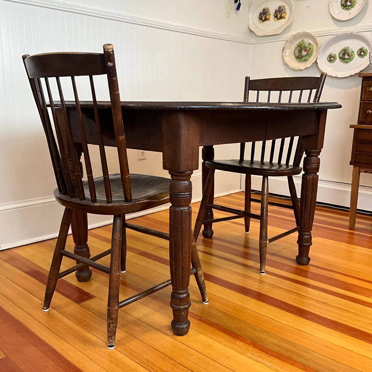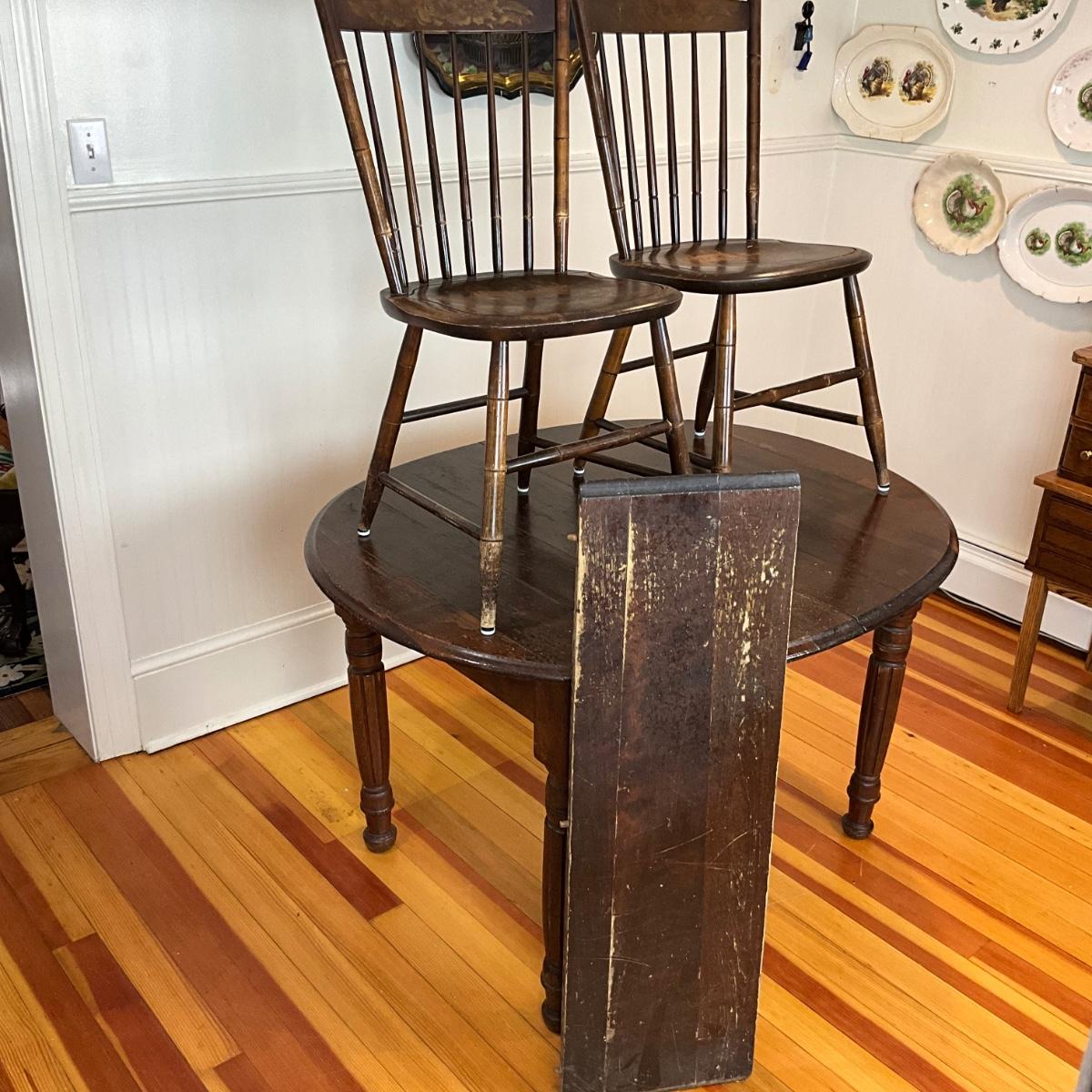 K484 Antique Victorian Oak Table with Two Chairs and Extra Leaves