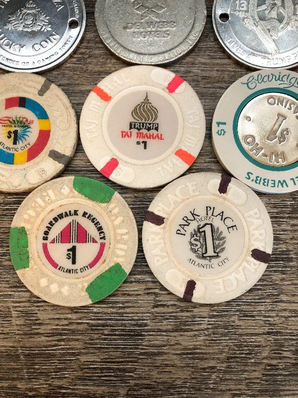 Vintage Casino Chips. Please refer to photos for size and condition. Have fun and happy bidding.