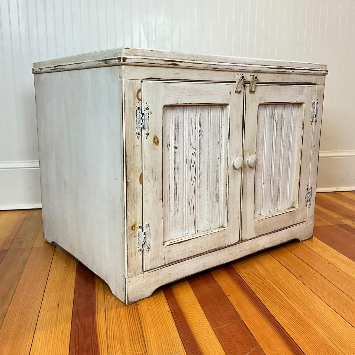 K491 Antique White Distressed Pine 2 Door Cabinet