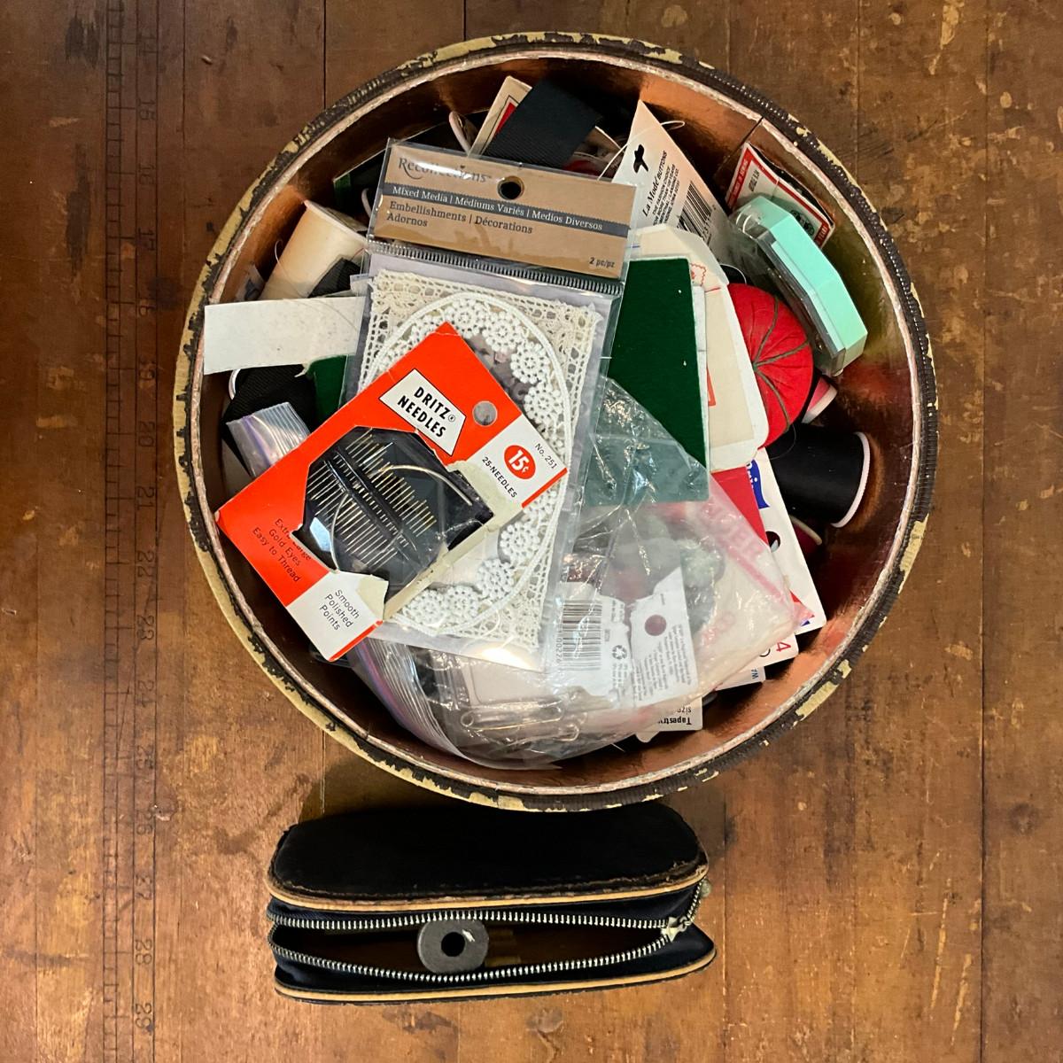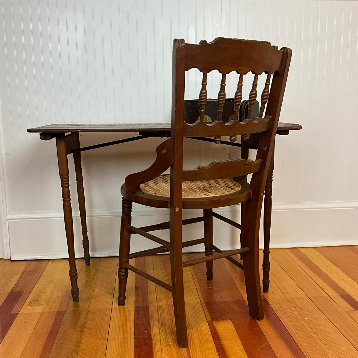 K493 Antique Victorian Folding Sewing Table With Chair & Accessories