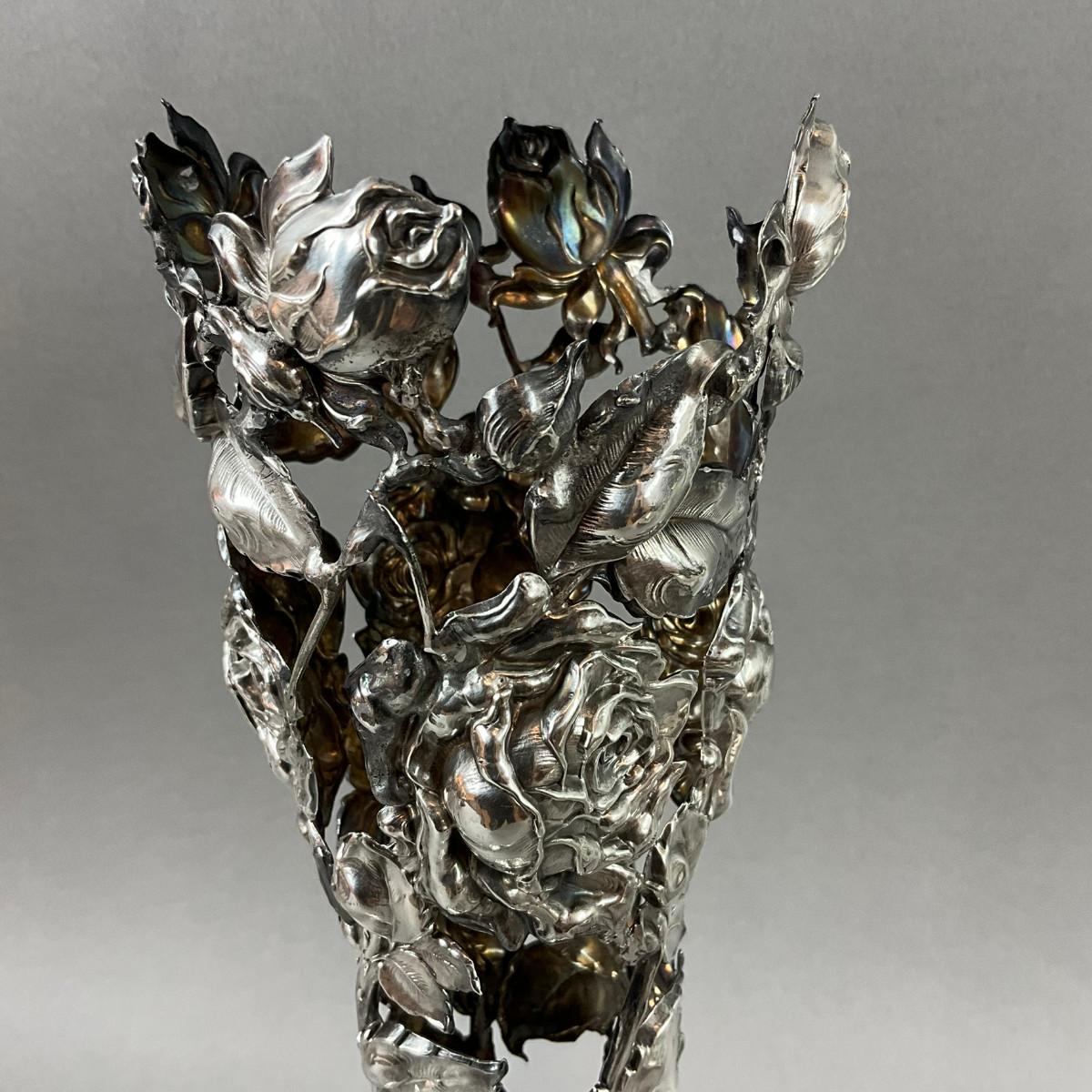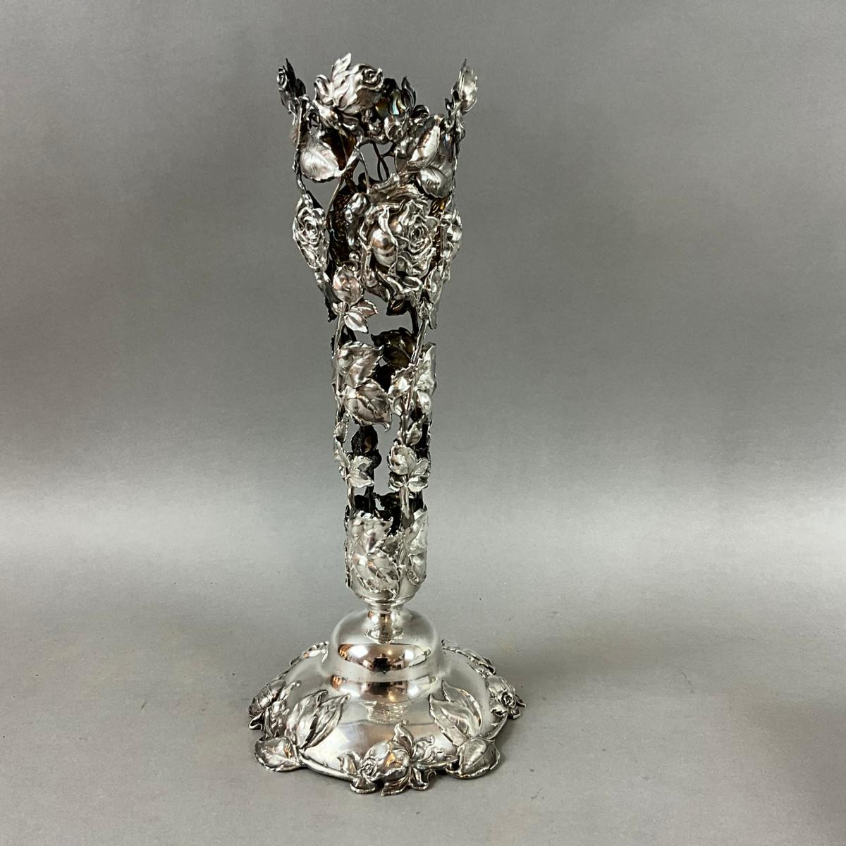 K494 Antique Bailey Banks & Biddle Sterling Floral Vase