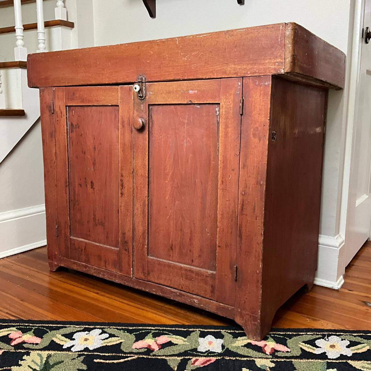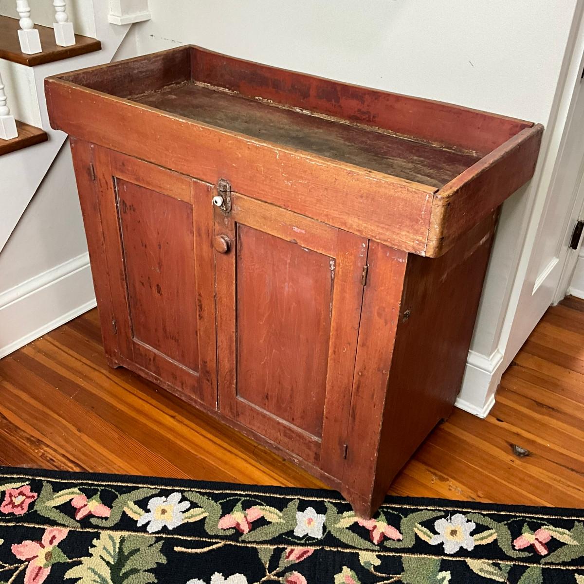 D495 Antique Red Painted Dry Sink