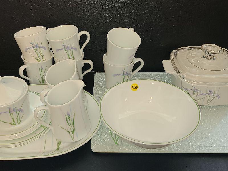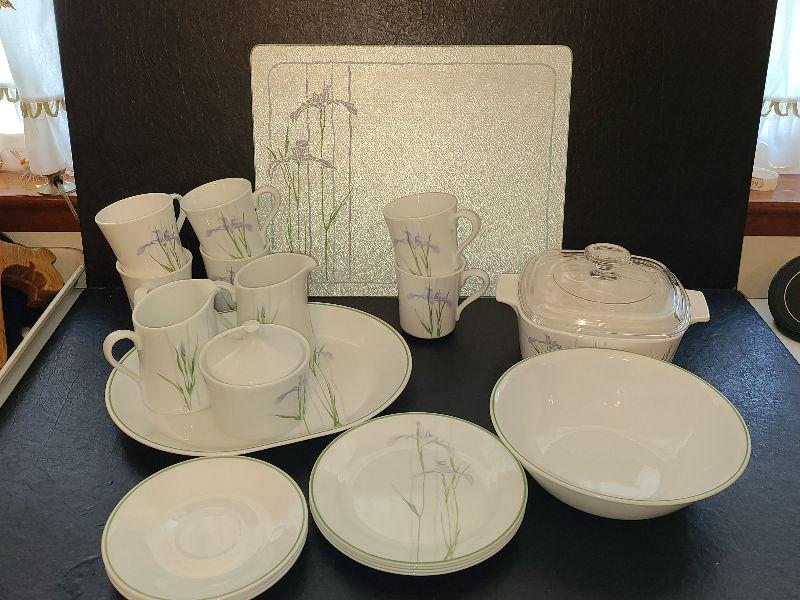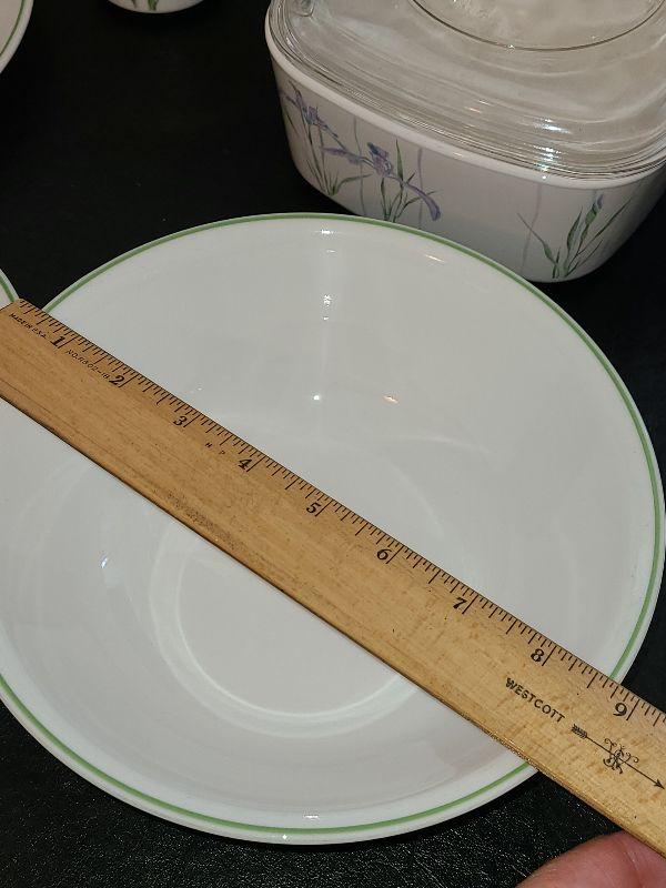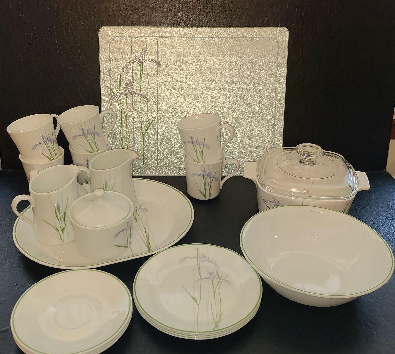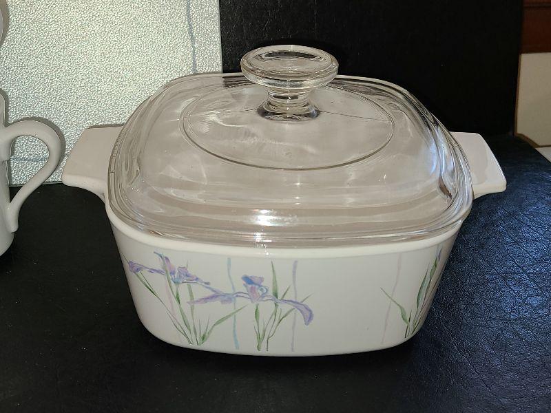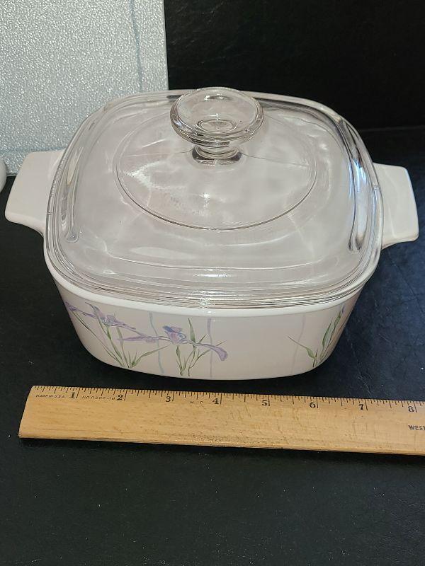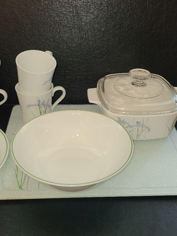 This is a very nice lot of Shadow Iris patterned Corning Ware. You get everything you see in the pictures including the matching cutting board, vegetable bowl, platter and casserole. This is great to add to your collection or start a collection. Will last forever! Please see all pictures for exact contents of the lot, condition of the items, and if measurements if taken. Thank you for looking and have fun bidding.