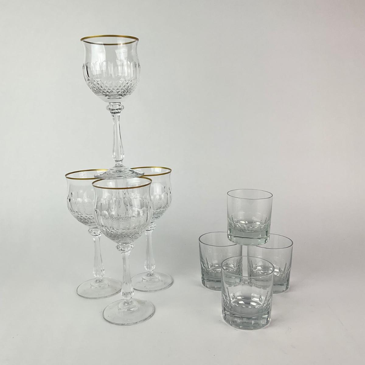 K51 Gold Gilt Trim Goblets with Whiskey Glasses