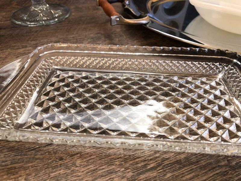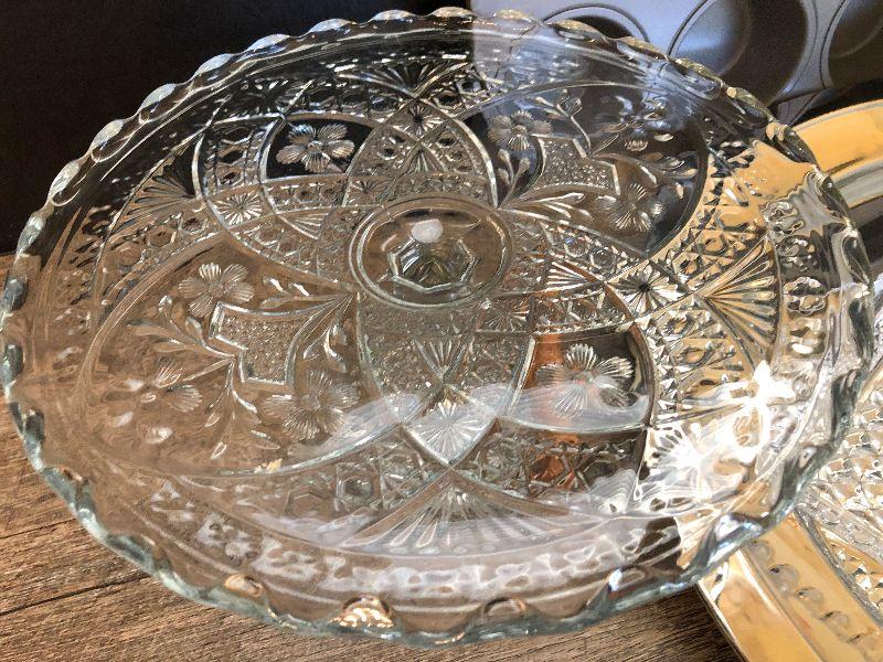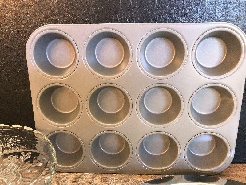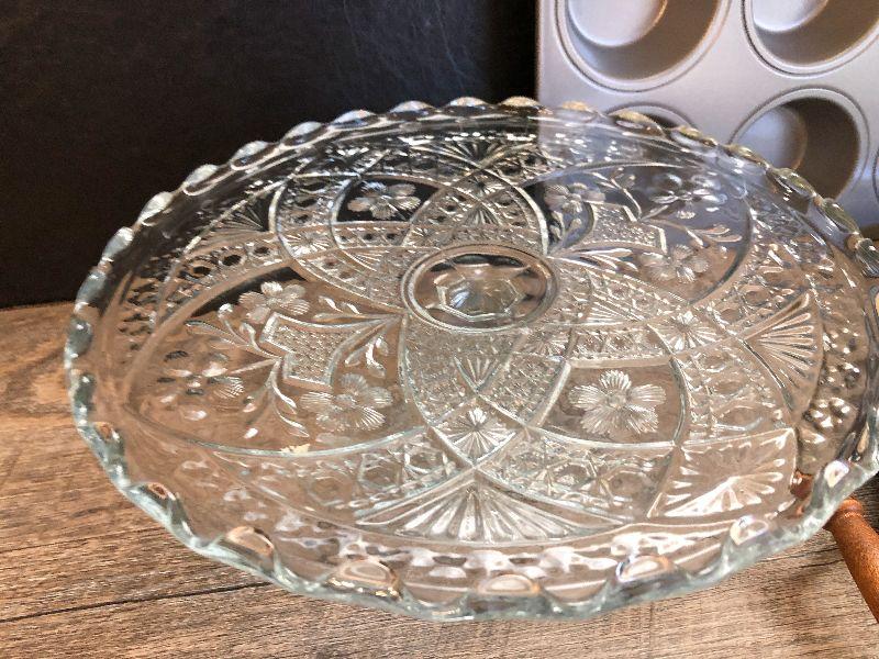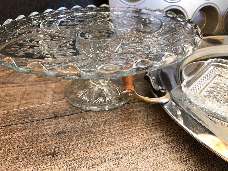 Serving Tray, Pyrex Dish, Muffin Tin, Pie stand and More. Please refer to photos for size and condition. Have fun and happy bidding.