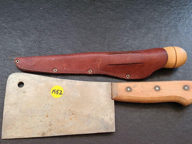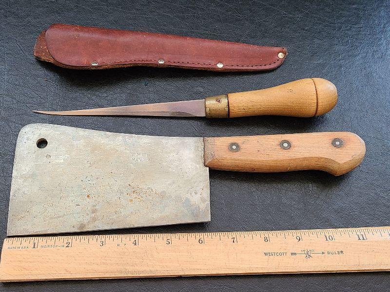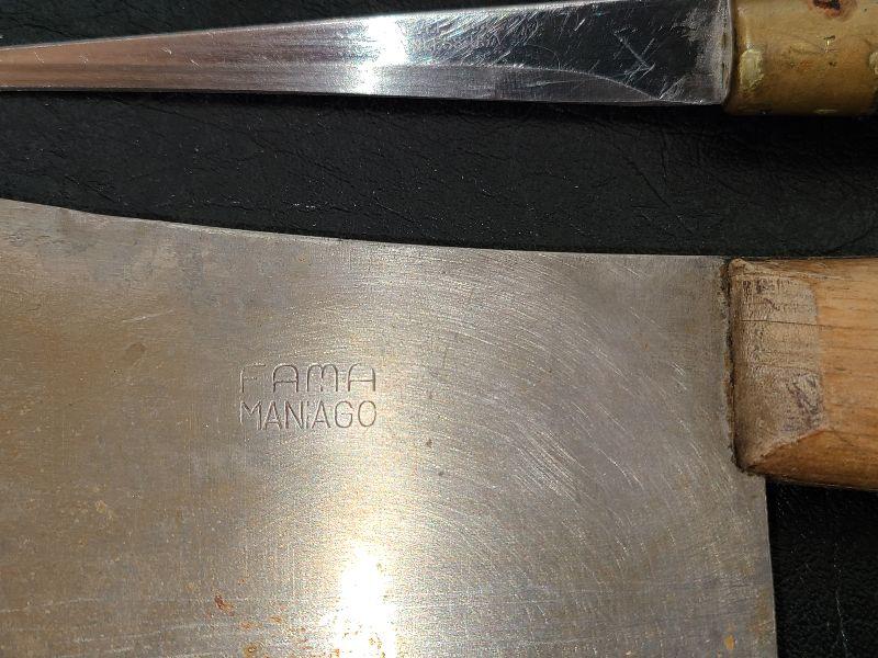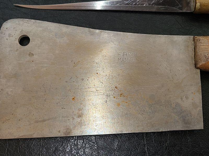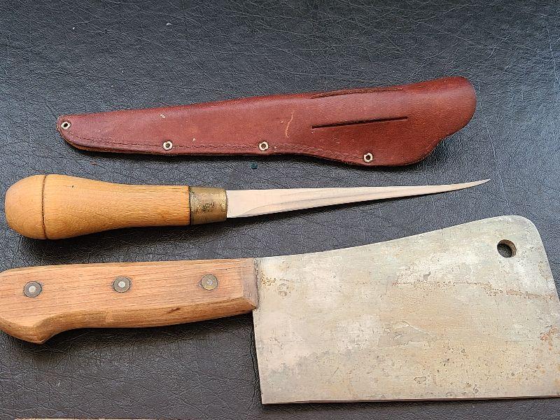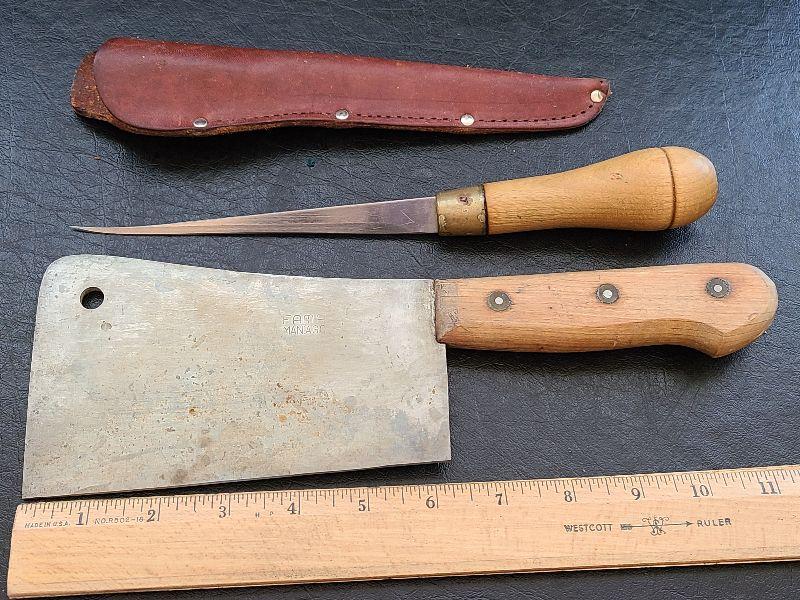 K52: Fama Italy Maniago Butcher Cleaver & Carvel Hall Filet Knife/Sheath