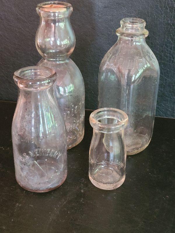 Vintage lot of milk bottles, they do show age. Please see pictures for contents of the lot, condition of the lot, and measurements if needed. Thank you for looking and have fun bidding!