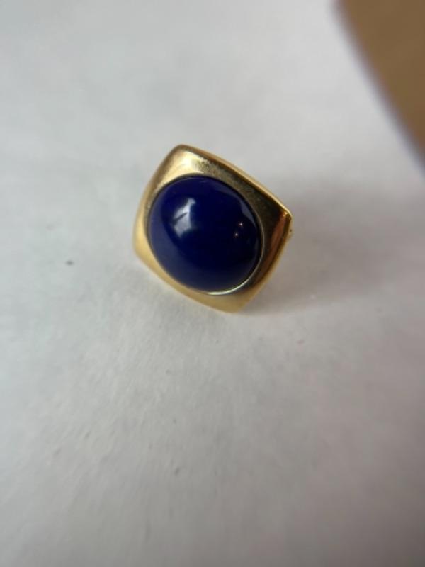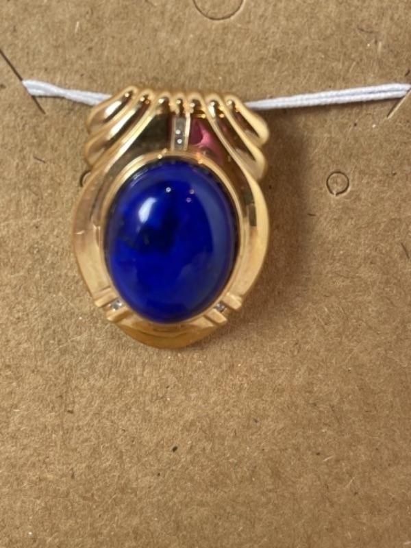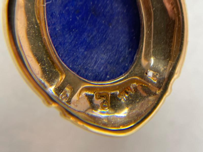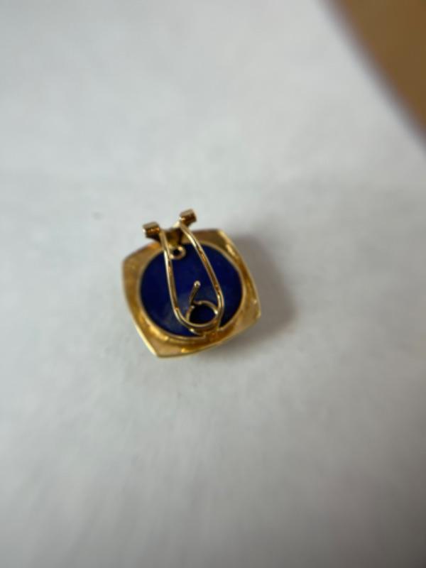 Blue lapis 10k yellow gold slide measures approximately 1” in size