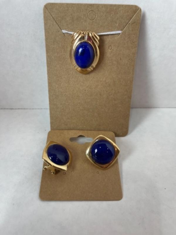K545 14k & 10k Yellow Gold Blue Lapis Slide and Earrings Set