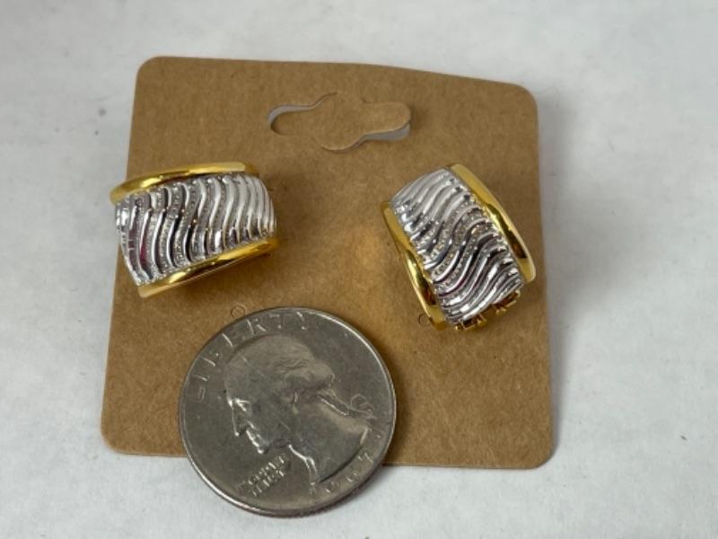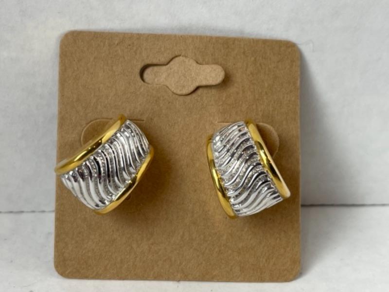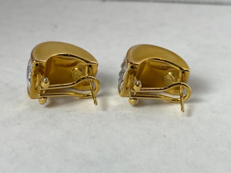 K554 18k Yellow and White Gold Wave Design Hollow Pierced Earrings Measuring approximately.75” tall and weigh 4.3 gm