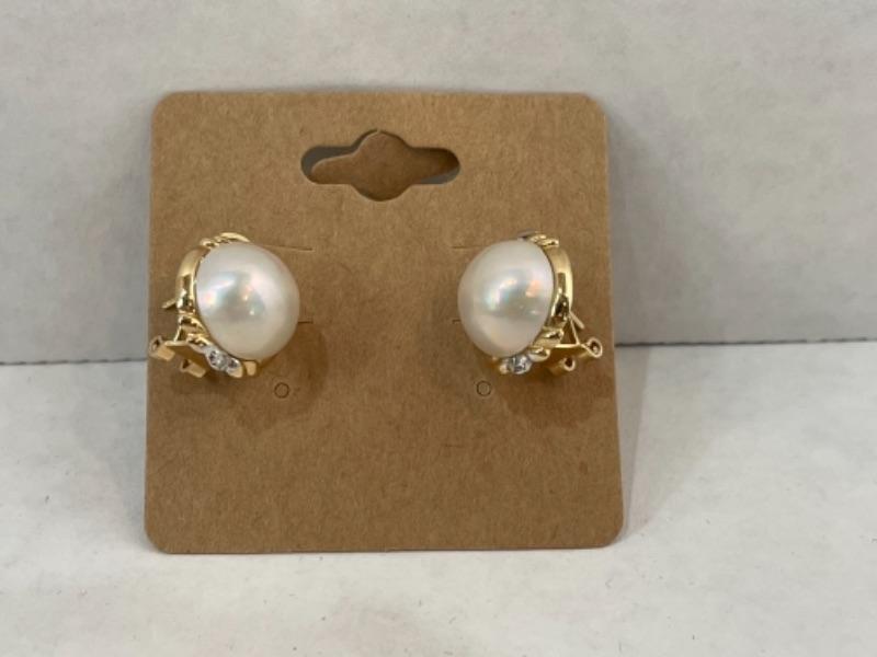 K563 14k Yellow Gold Diamond and Pearl French Back Earrings