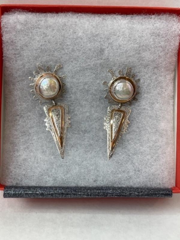 K562 Sterling, 14k , Pearl Pierced Earring by Tabra Tunoa