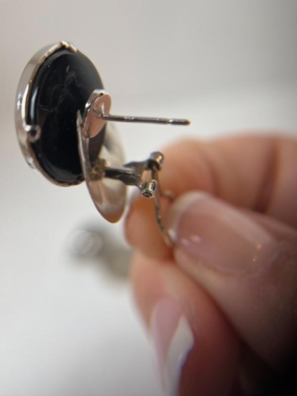 K569 14k White Gold Black Onyx Pierced French Back Earrings