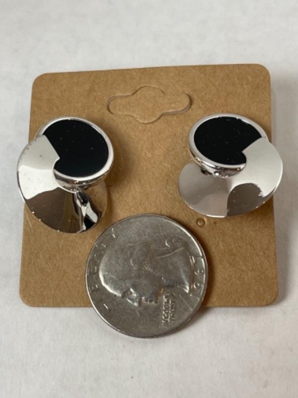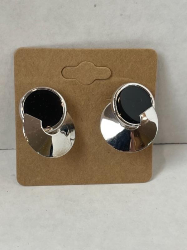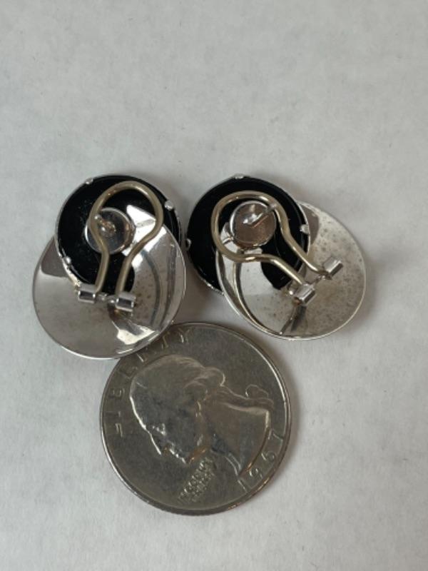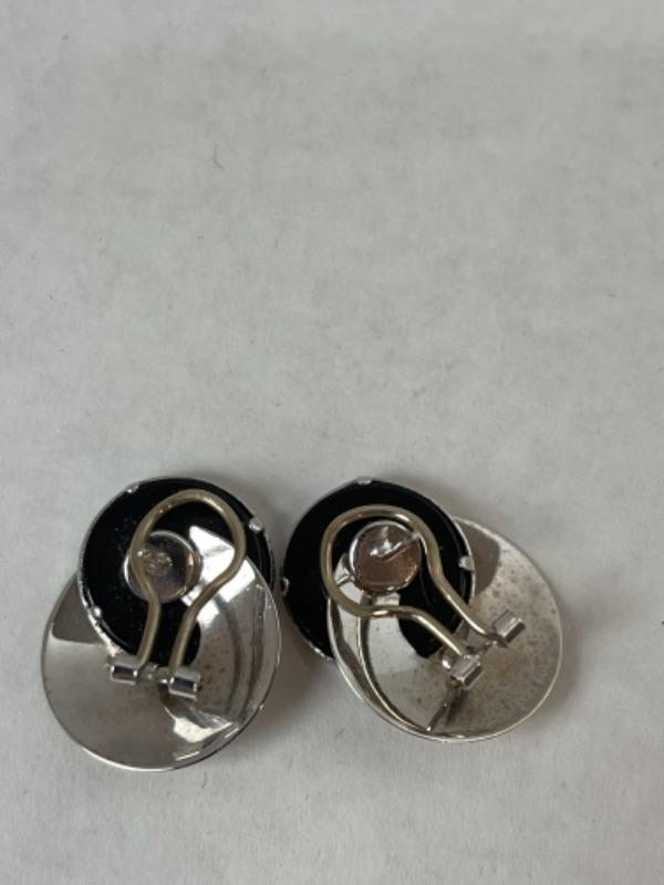 K569 14k White Gold Black Onyx Pierced French Back Earrings Measuring approximately 1” long. And weigh