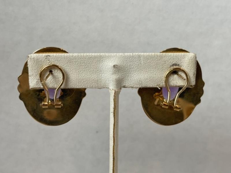 K574 14k Yellow Gold Oval Amethyst Pierced Earrings.
