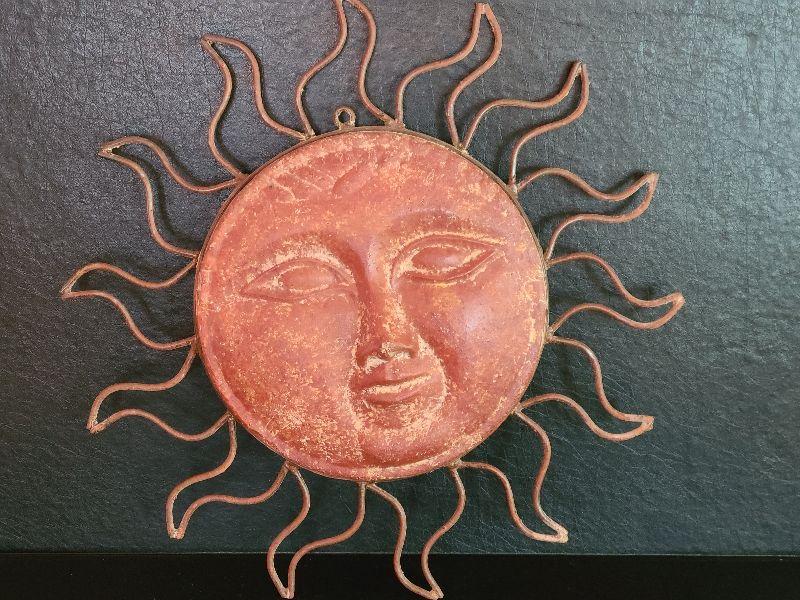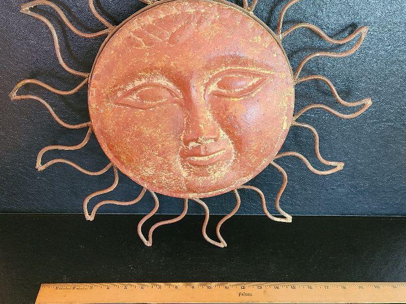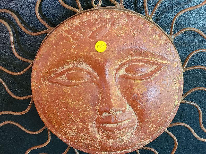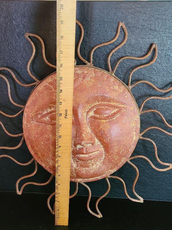 This is so cool on the wall. It is heavy made of metal and clay, very unique!! Please see pictures for contents of the lot, condition of the lot, and measurements if needed. Thank you for looking and have fun bidding!